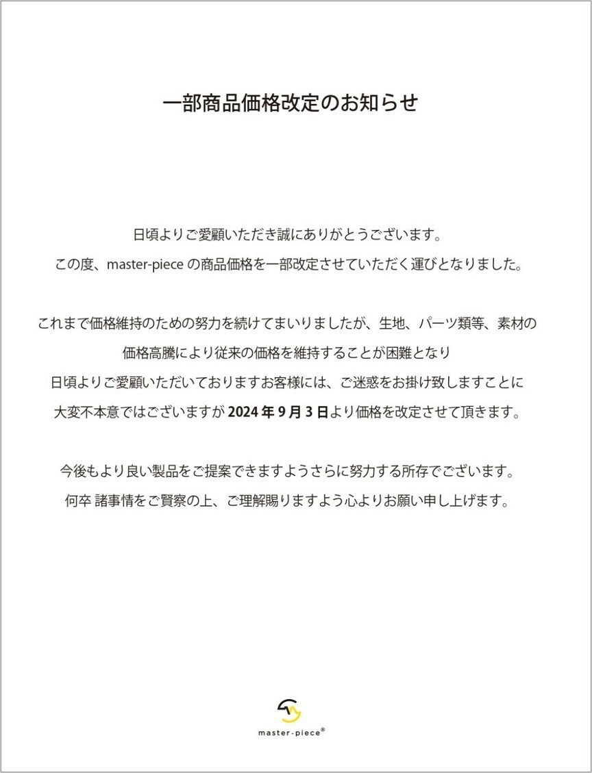 所以自 2025年1月25 日起 master-piece TAIWAN 將調整部分商品的售價
