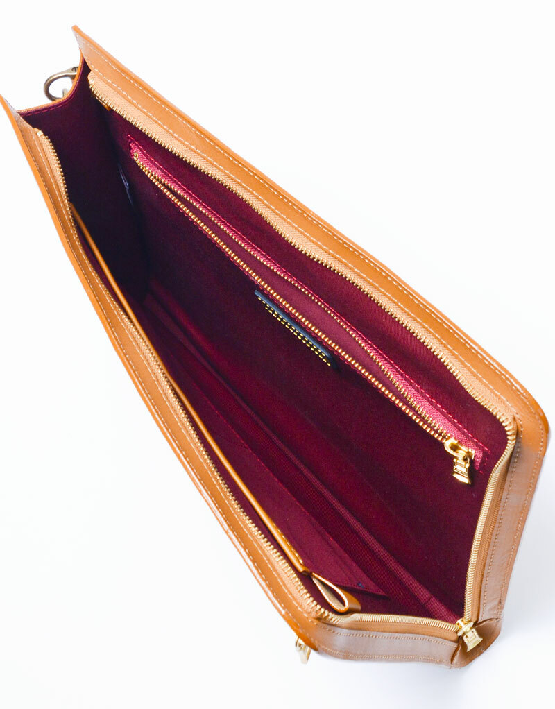 皮革成品均通過「SCOTCHGARD」防水、防污、抗油檢驗標準。此系列包款正面皆搭載防水拉鍊,內裡夾層設計使用了三個分層增添使用機能,與加強皮革防水效能。此經典系列再進化版為日常生活到商務環境都能夠完美的使用。