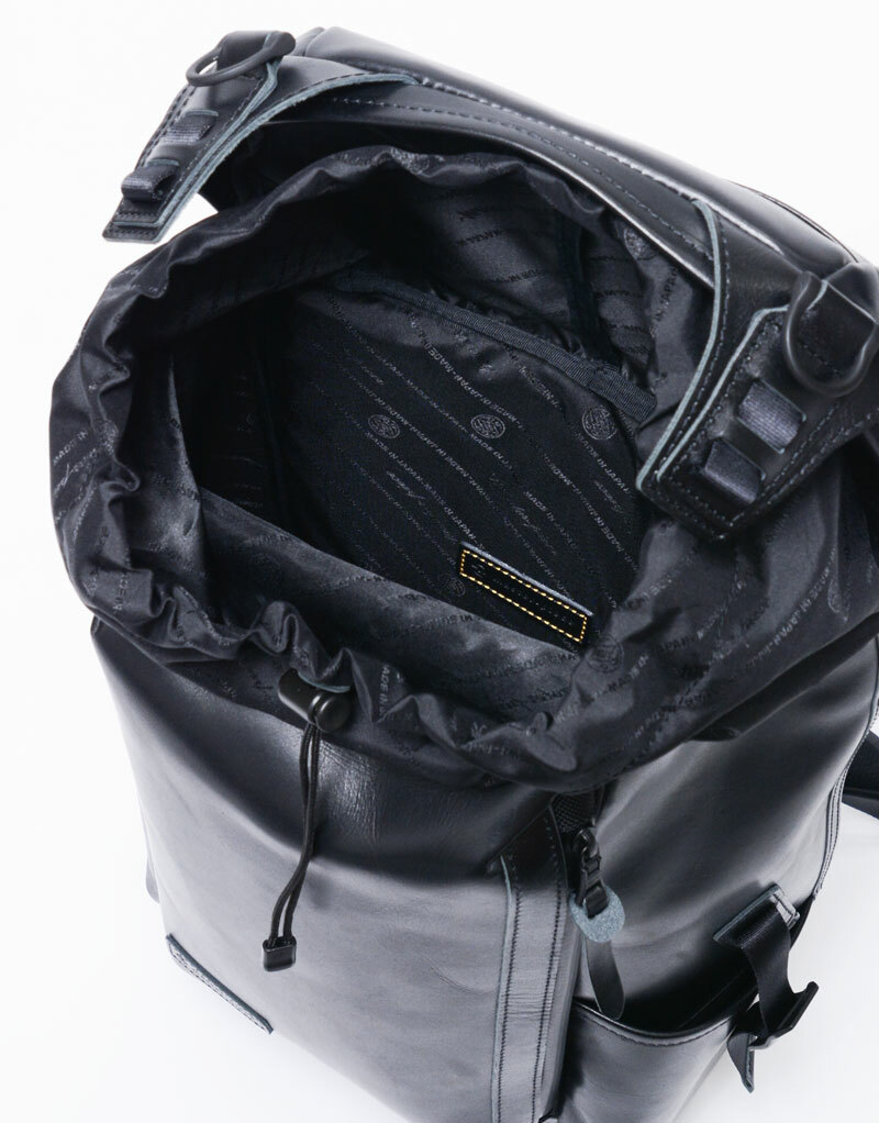 主體皮革的原皮嚴選自日本國產的去勢牛皮。在鉻鞣處理後,染色時在滾筒中加入3M公司 生產的防水劑,使防水劑滲透到皮革纖維內部。由於防水劑深度滲透到纖維中,不僅能從皮革的背面、側面,甚至是受損處都能持續防止水分滲入,大大提高了防水性。