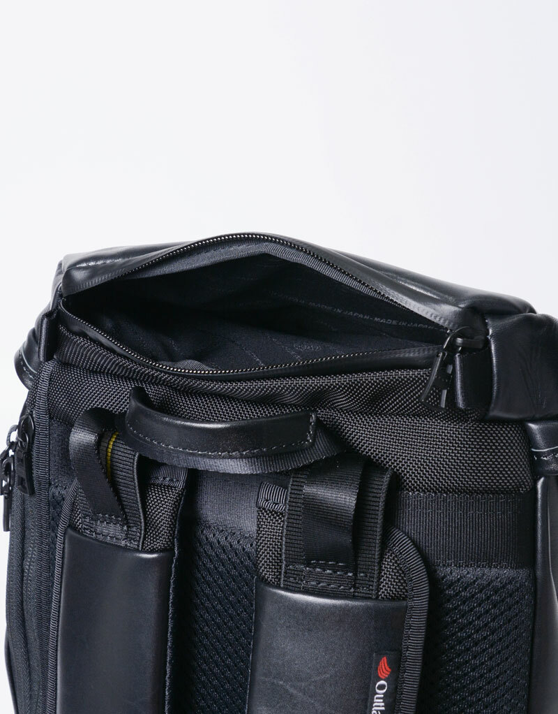 在接觸肩部和背部等身體部位的地方使用了Outlast。是一種專為NASA開發的材質,在 Outlast公司指定的塗層工廠中,將含有石蠟蠟的微膠囊塗在Outlast上。它能吸收自身多餘的熱能,當溫度降低時又能釋放儲存的熱量,從而保持人體舒適的溫度(31°C~33°C)。 此外,內裏材質使用了印有master-piece Logo的原創印花設計。