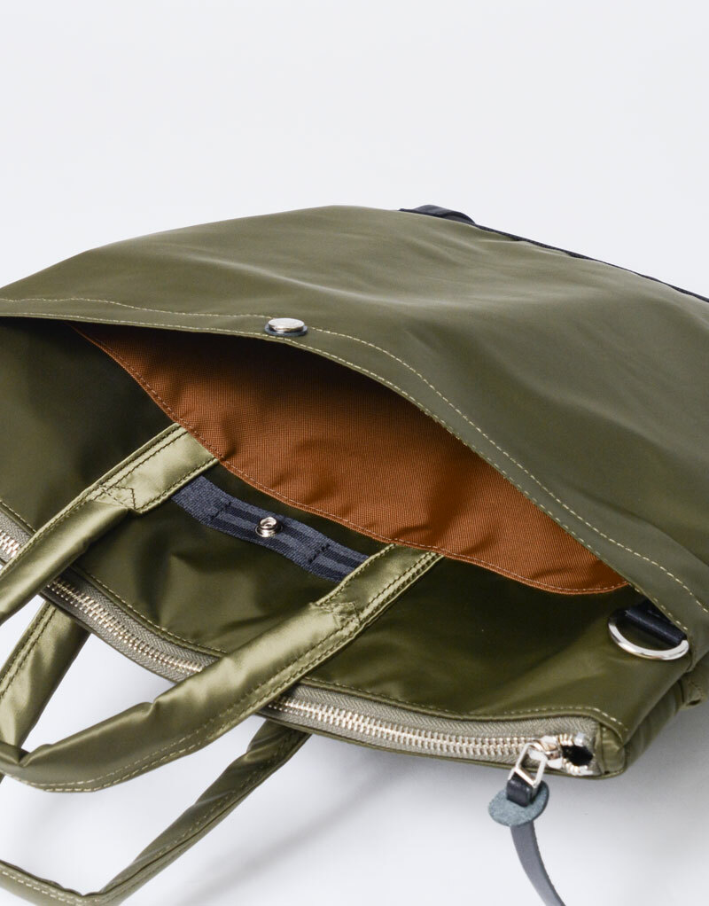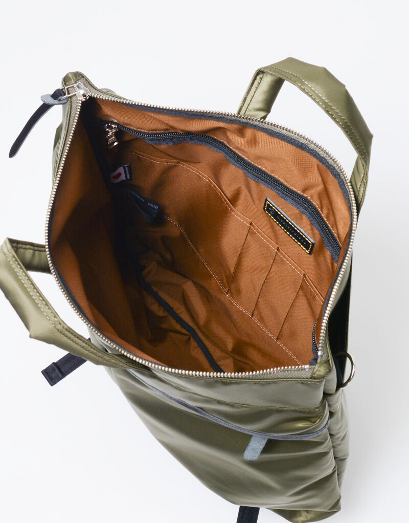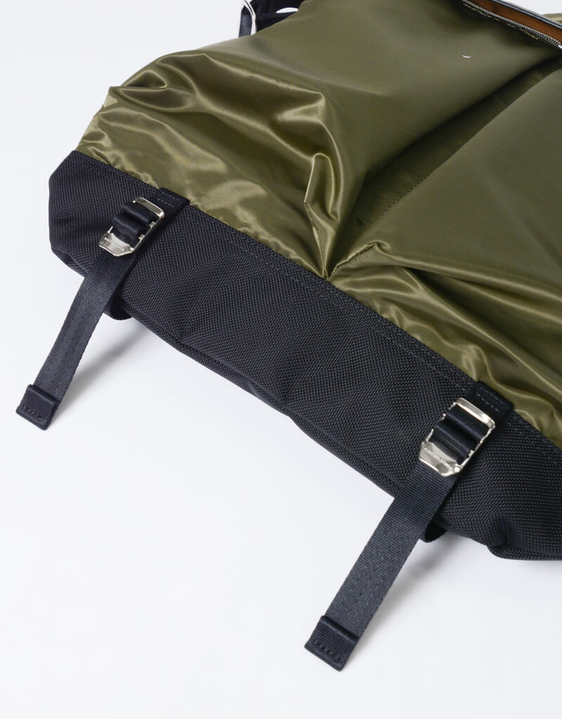 本系列商品結合了具有高雅光澤的超高密度尼龍斜紋布和金屬配件,呈現出軍事風格的休閒設計。