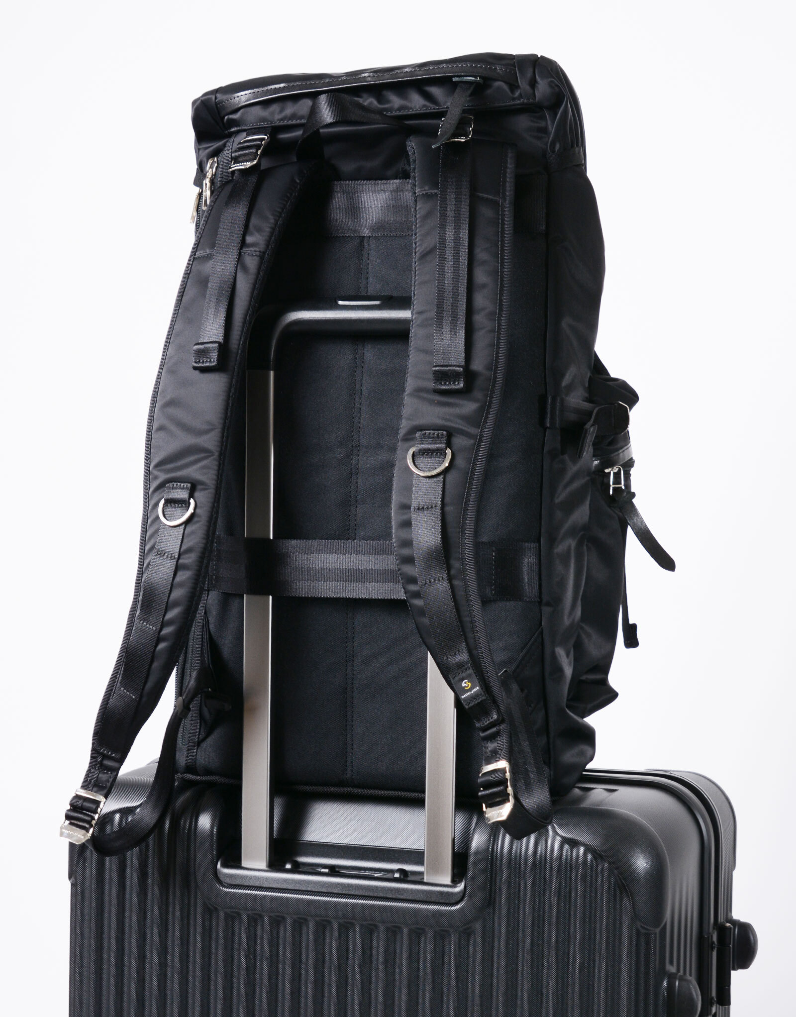 本系列商品結合了具有高雅光澤的超高密度尼龍斜紋布和金屬配件,呈現出軍事風格的休閒設計。