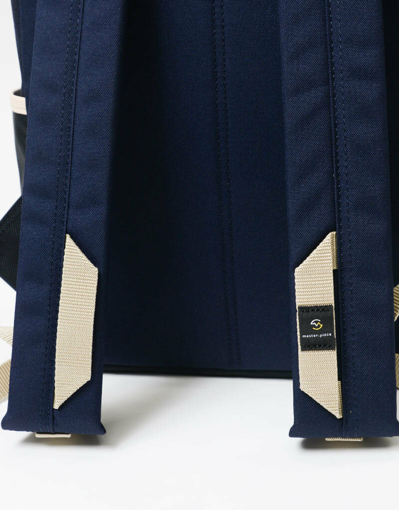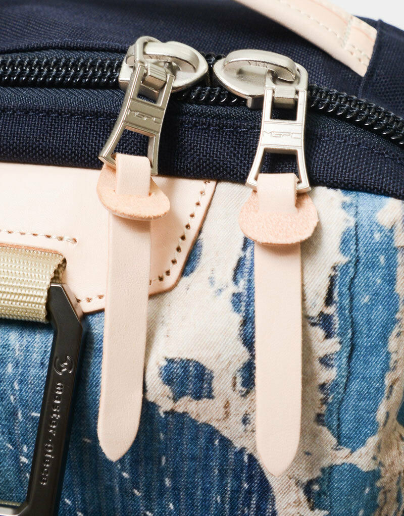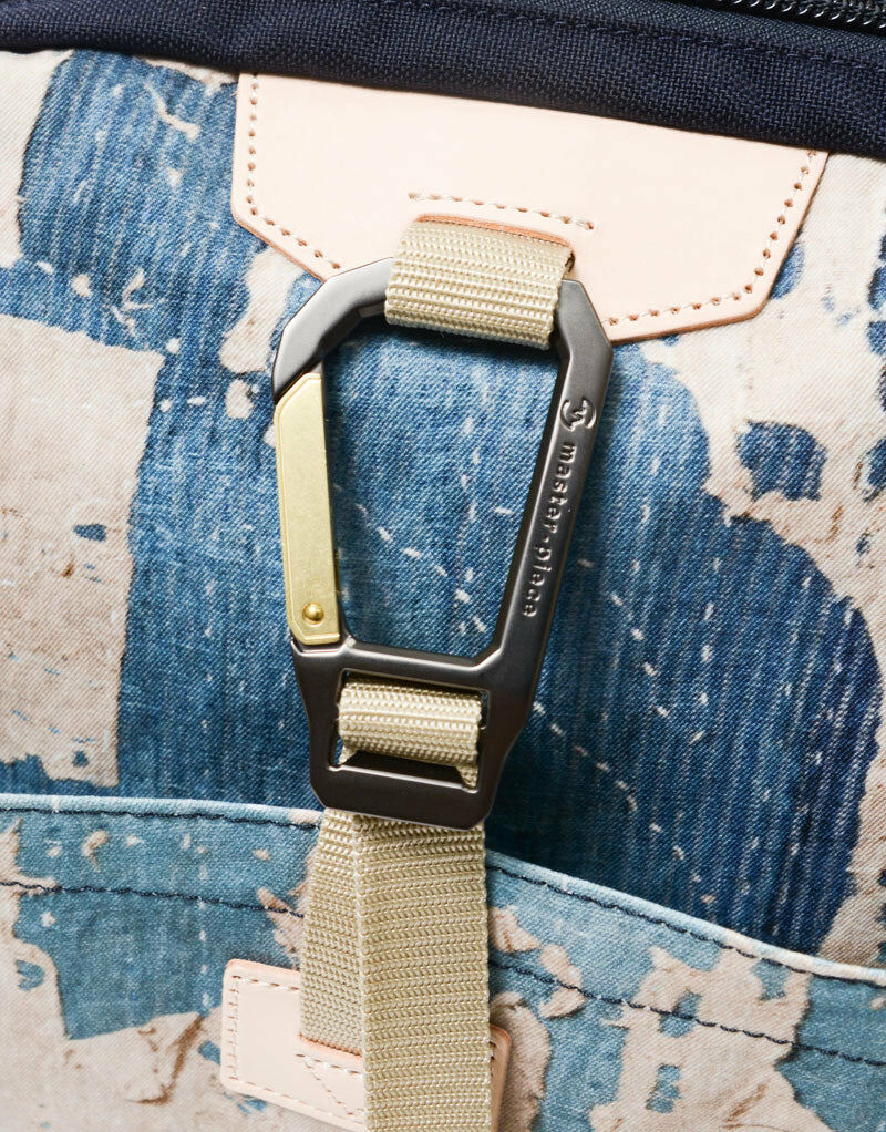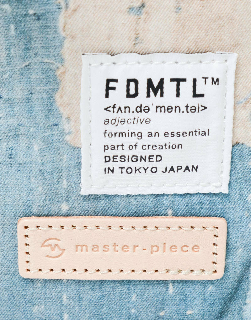 以FDMTL品牌識別丹寧布拼接加工以獨特的轉寫技術重現,將簡單的素面尼龍布料經兩道不同的加工流程轉變為全新素材,全新概念的異素材拼接為master-piece與FDMTL跨界合作的最新款式。