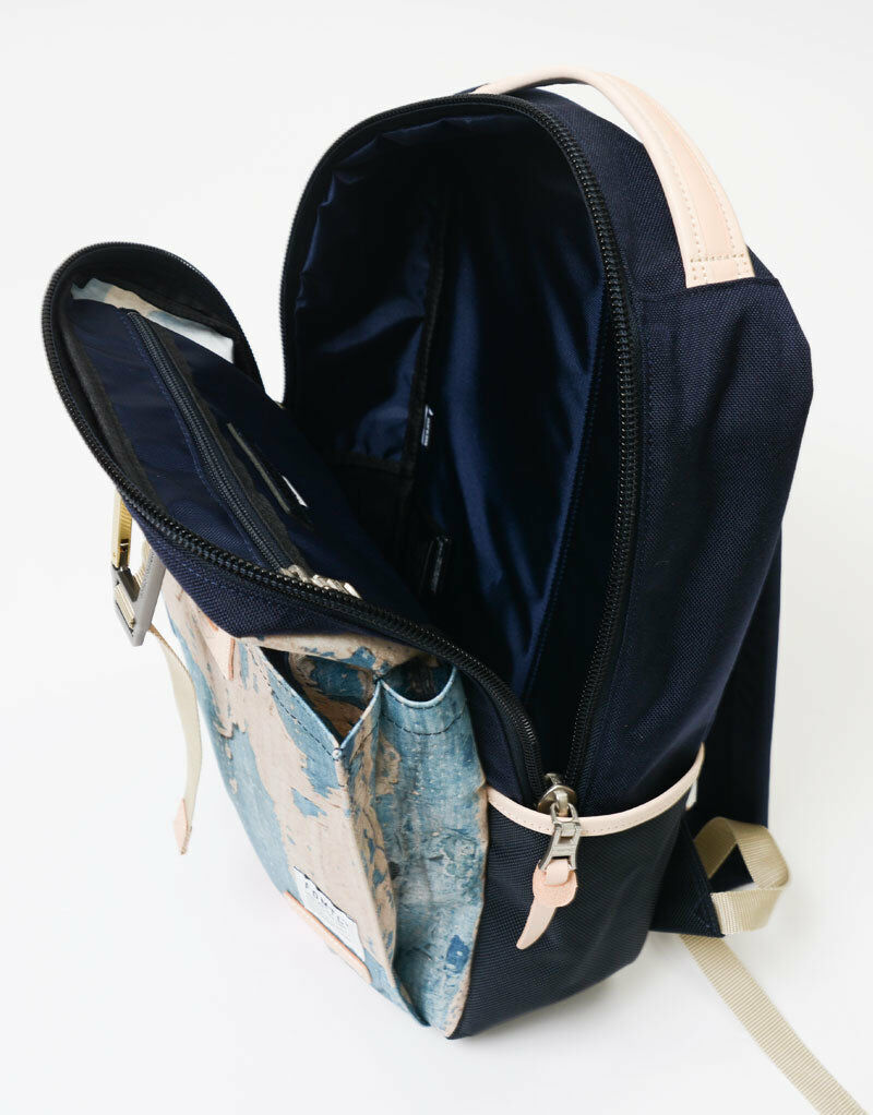 主體面料使用縱/橫系320d撥水加工尼龍,經小松精練株式会社專利技術KONBU-N特殊加工,使原來滑順的尼龍織線提升表面硬度,更具有如昆布般的乾燥手感與皺摺;為重現FDMTL品牌特有的丹寧布拼接花紋,委託數位轉寫業界領頭羊 小松精練株式会社以獨家印染技術 – MONALISA進行丹寧布的擬真轉寫,其高達1670萬的色彩量與熟練職人的精準控制及高度技術足以重現各式擬真效果並持久不易褪色,且其轉寫加工過程大幅降低能源、水、各式資源之使用與排放,無使用定色藥品、染料等,為兼顧社會責任之環境配慮型素材。附屬材質則使用高品質指標的INVISTA社CORDURA Ballistic® fabric 1680d尼龍,其具備超越一般尼龍5倍耐摩耗、撕裂之強度,於1680d布料內裏施以PVC加工使素材全面兼顧耐磨損即抗水機能,為顧慮流行與素材機能之結合。附屬皮革排除使用污染誘因的各種藥品與染料以及各種對人體有害的物質及六價鉻,僅使用100%雙重單寧酸鞣製加工,為以環境與人體為優先考量的環保製程天然皮革(NISSENKEN環保規格認證)。