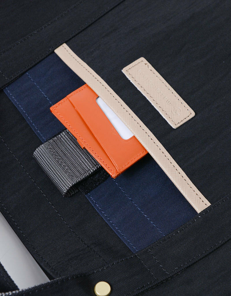 本體素材使用經特殊加工的斜紋織尼龍,縱系210d橫系420d經特殊加工使布料本身因縮率不同而提升密度並使斜紋觸感越加明顯。