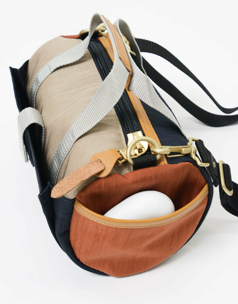 本體素材使用經特殊加工的斜紋織尼龍,縱系210d橫系420d經特殊加工使布料本身因縮率不同而提升密度並使斜紋觸感越加明顯。