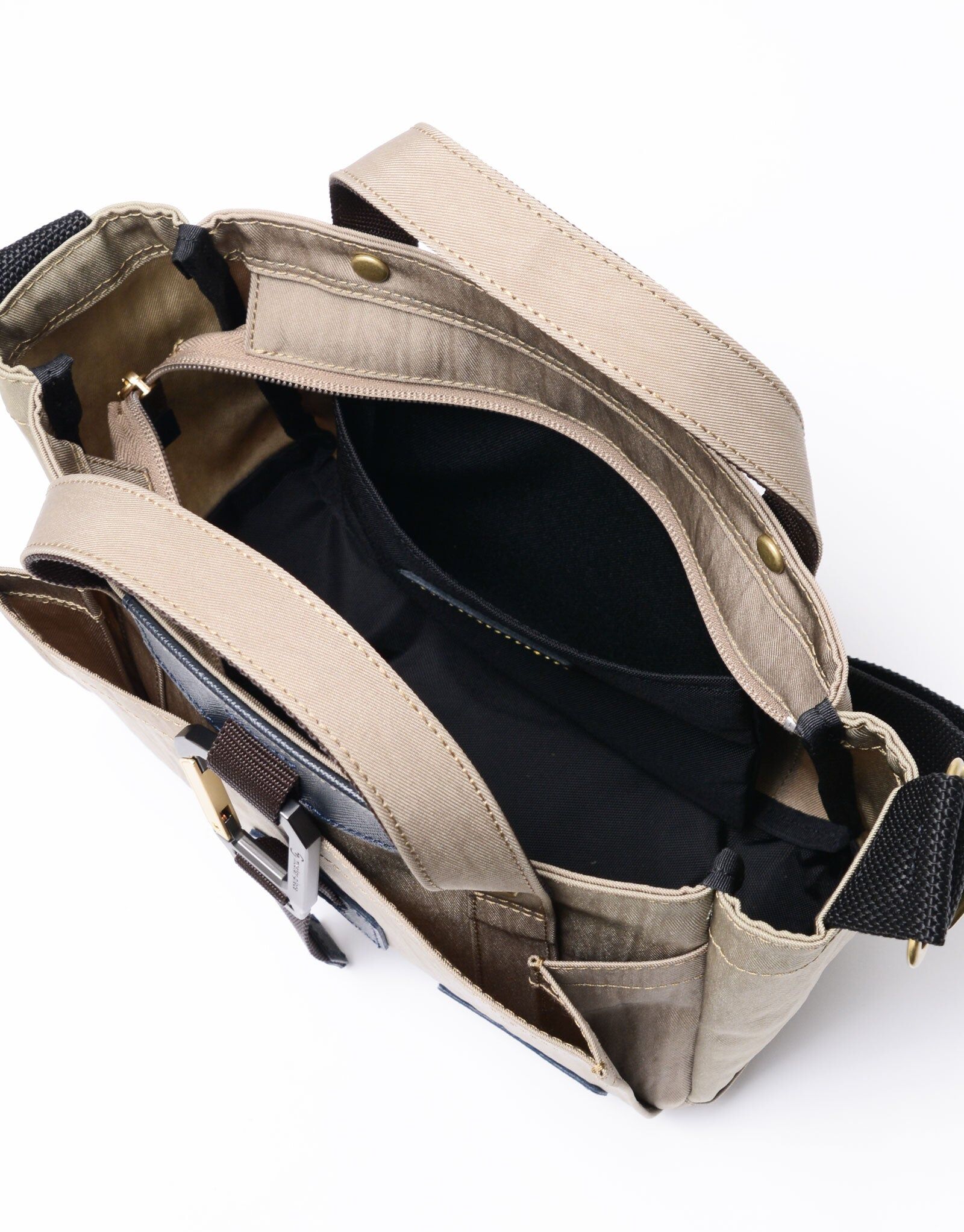 本體素材使用經特殊加工的斜紋織尼龍,縱系210d橫系420d經特殊加工使布料本身因縮率不同而提升密度並使斜紋觸感越加明顯。