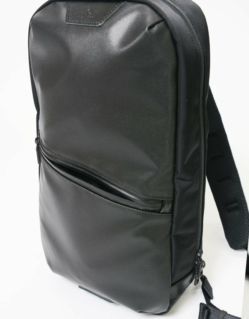 主材質採用600d聚酯纖維,並在表面貼合對環境友善的高耐久PU素材(在生產過程中排除了約90%因溶劑等的環境污染誘因)。表面使用斜紋織的離型紙加工,呈現微微的光澤且帶有獨特膠感的質感特徵。