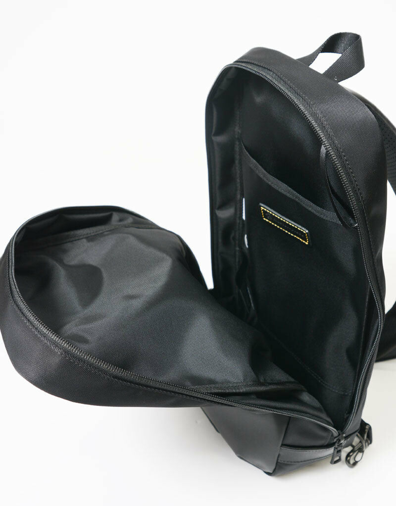 附屬尼龍面料為Toray株式會社的MIRACOSMO®使用極少雜質的120d尼龍線,以克爾西織法呈現高質感光澤、明顯的斜紋為特徵。裏面加上PVC加工,提高防水性及挺度。