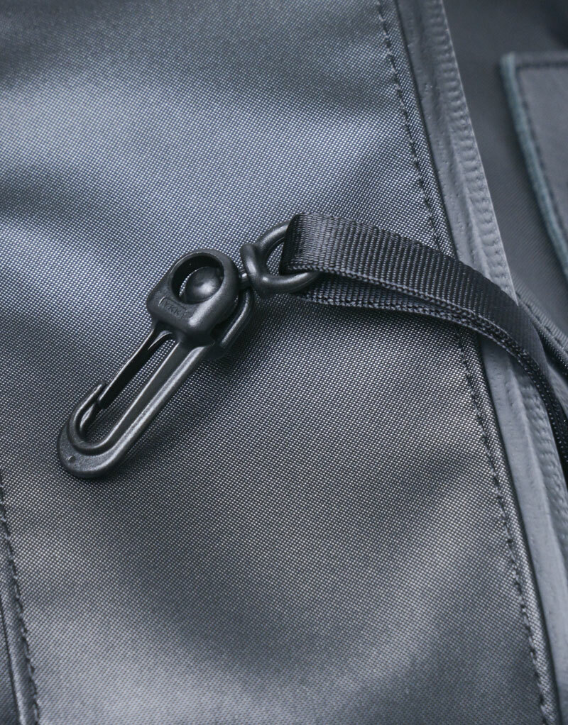 主要拉鍊使用YKK防潑水拉鍊、前側使用YKK AquaGuard®防水拉鍊。
