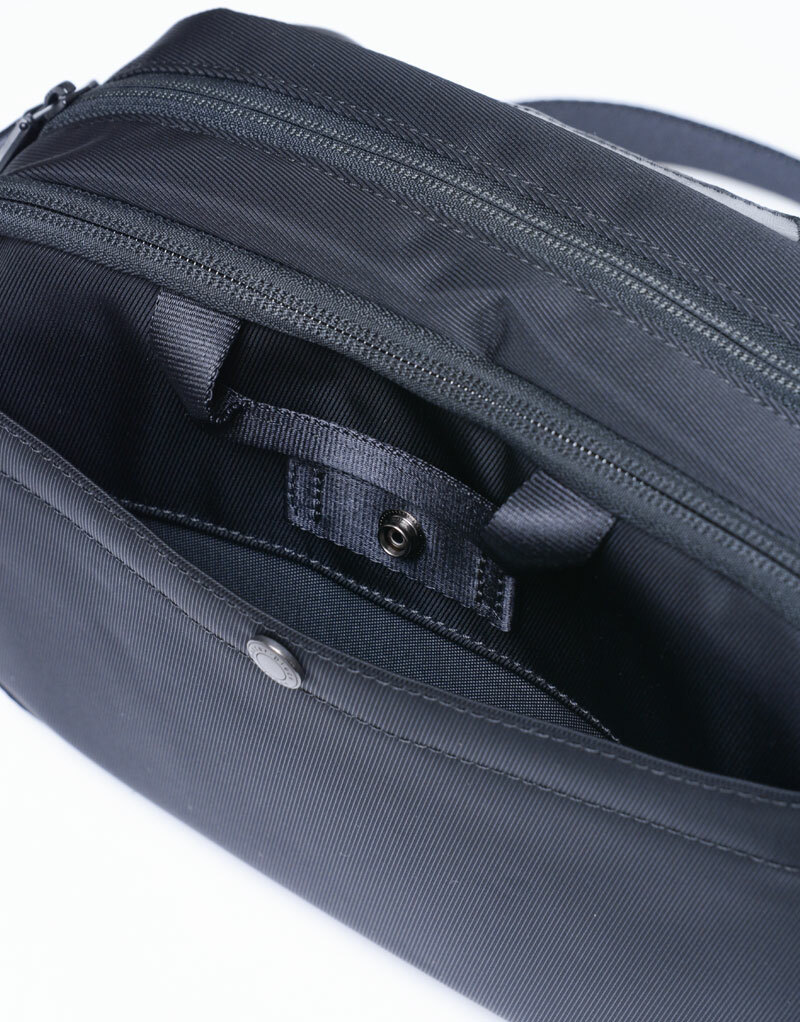 背面也設有拉鍊口袋式的收納空間。分為兩層,雖然體積小巧但具有優異的收納能力。