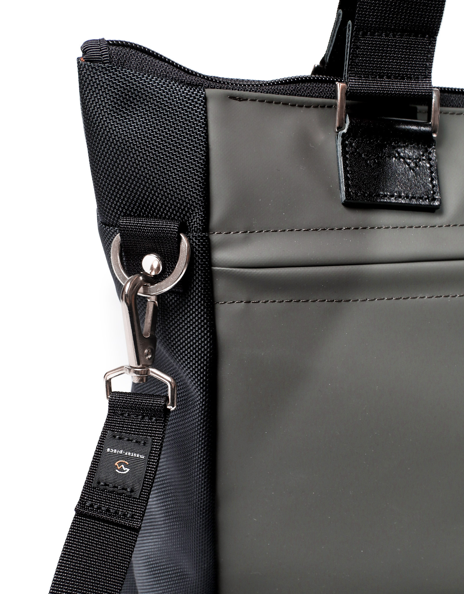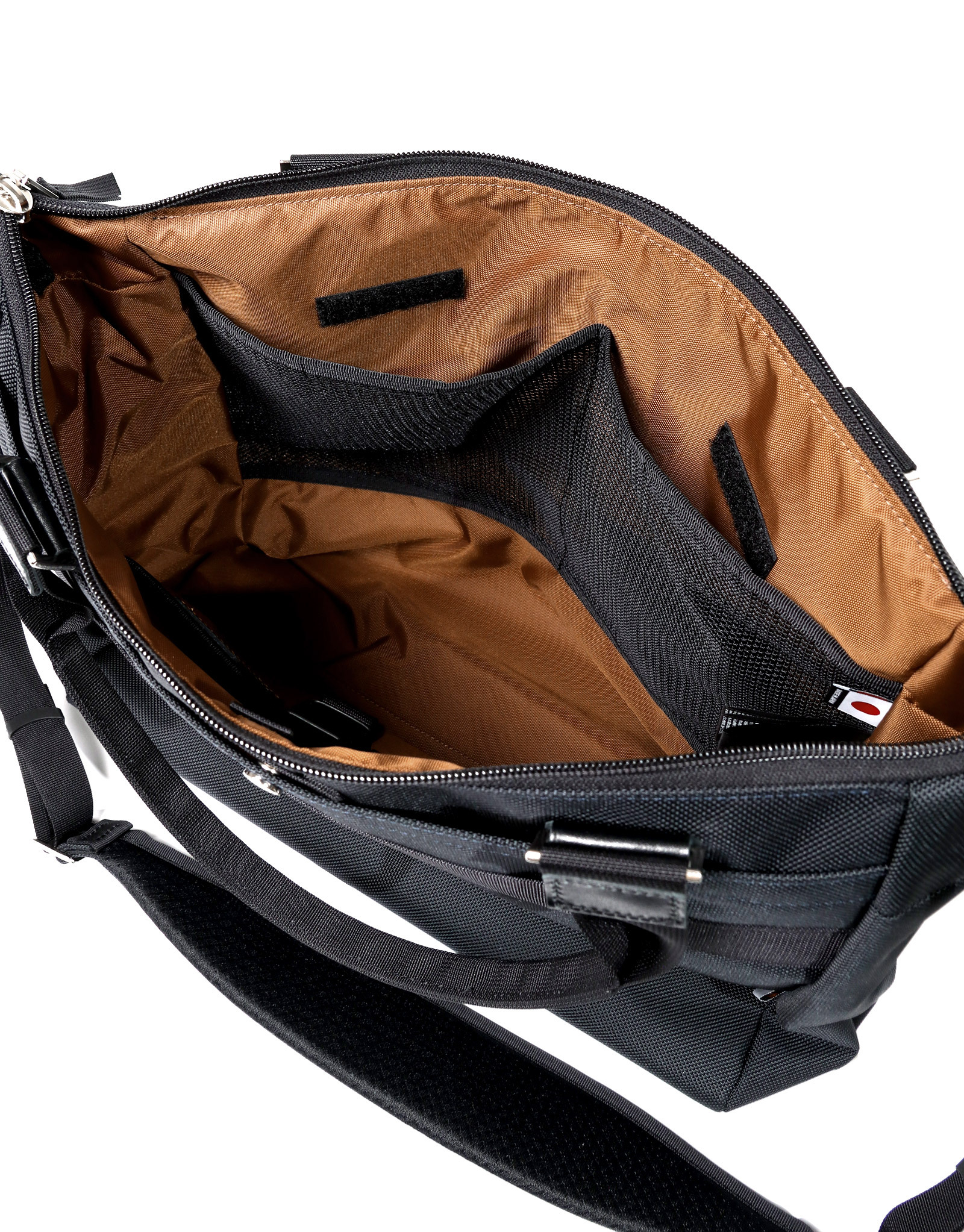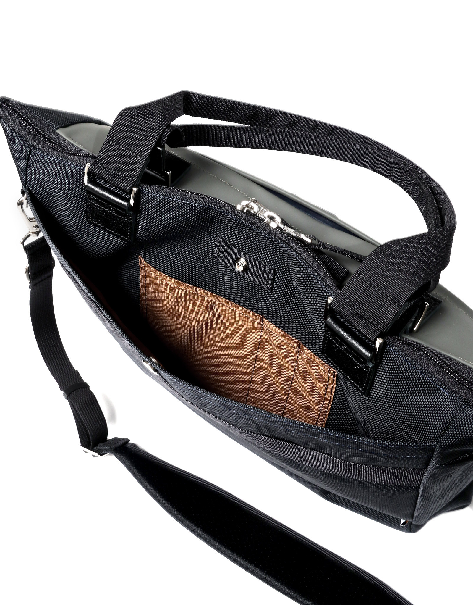 本體材質採用 CORDURA Ballistic® fabric 1680d 尼龍,相較一般尼龍具有更高的耐久性,並具備優異的抗摩擦與抗撕裂強度。 透過使用 840d × 840d 的撚紗,並將兩股紗線並列織造,使布料的耐磨與抗撕裂性能進一步提升。表面施有防潑水加工,背面則施以 PU 塗層處理。