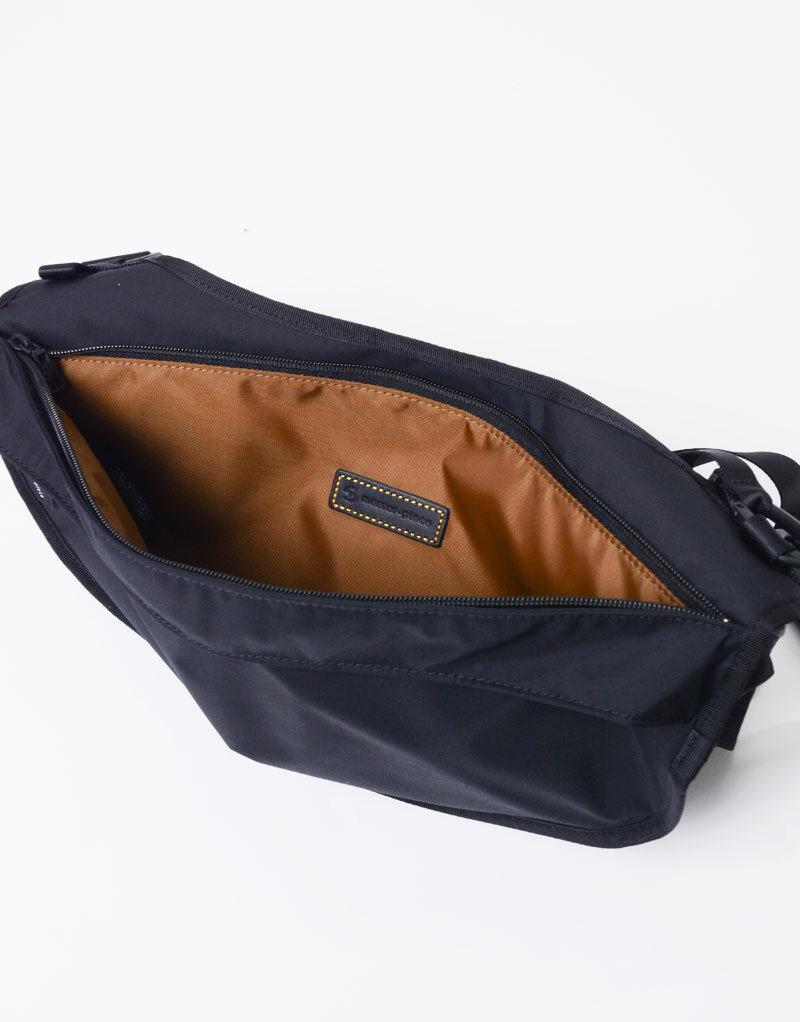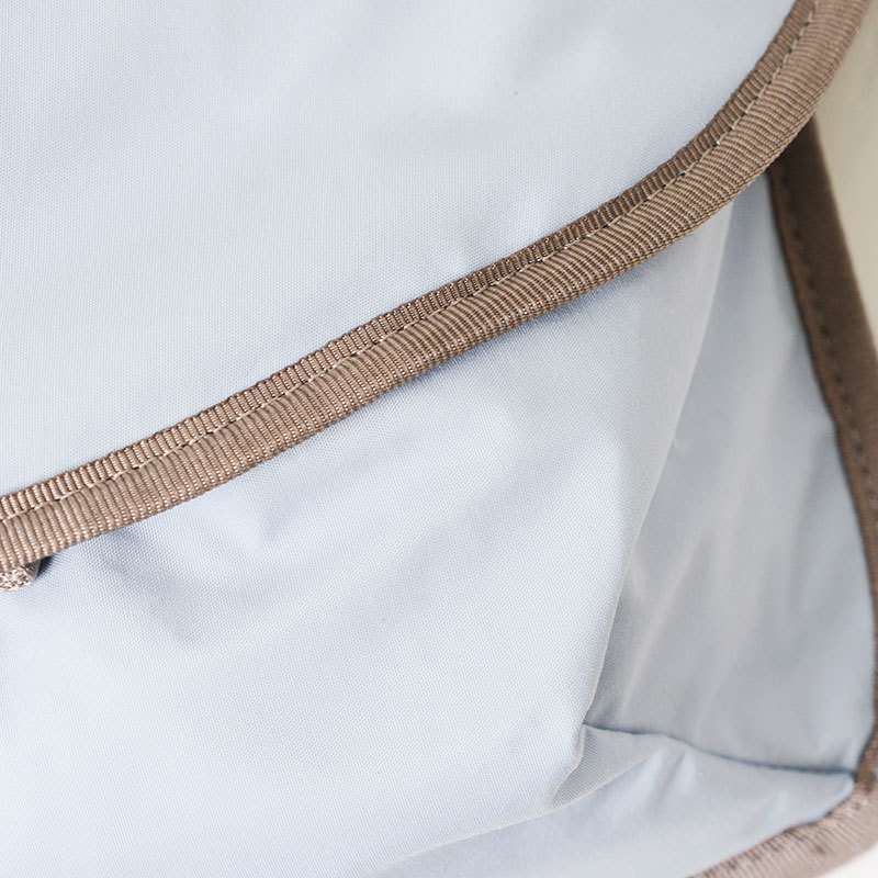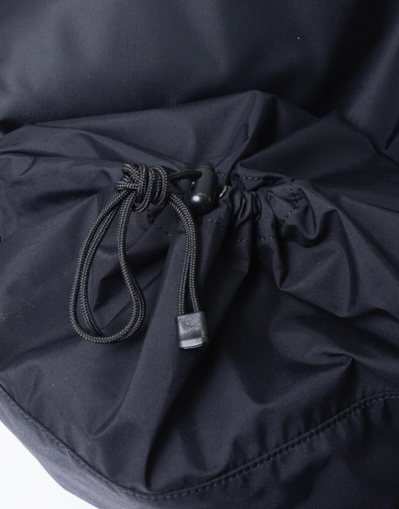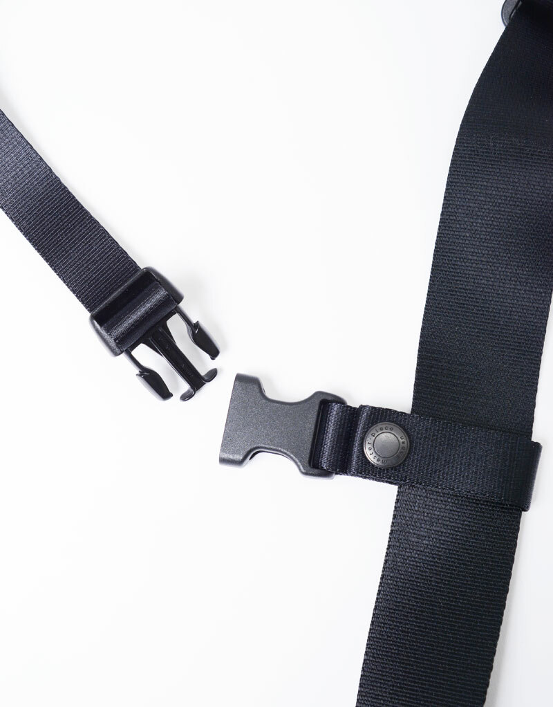 此包型可背在前側使用,順著身型的弧度、一體感的獨特設計。有束口型的瓶裝口袋設計,可將隨身物品與飲品分層收納。另外也有登山勾及可調式扣具配件設計,可掛毛巾、鑰匙等小物使用。