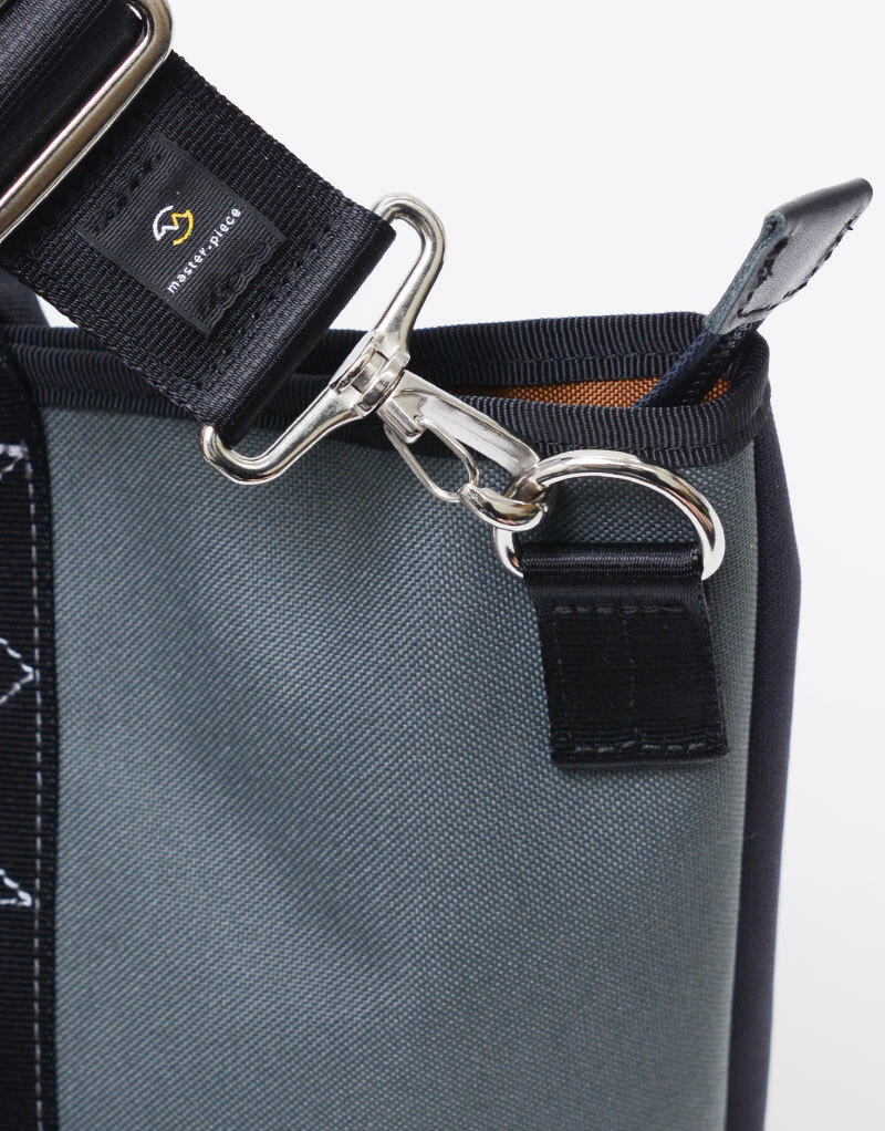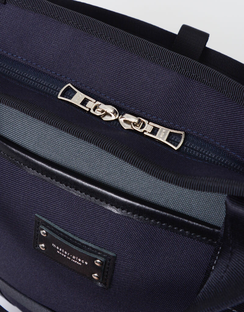本體材質採用擁有棉紡觸感、但更輕且更耐用的聚酯纖維,以縱、橫600D的聚酯纖維織線交錯織製而成。將材質染成戶外風格的鮮豔色彩、並進行防潑水加工,最後於內裏施以同色且不含對人體有害的鄰苯二甲酸塑化劑的PVC覆膜加工,以增強防水性與強度。配件使用的皮革已通過日本皮革技術協會13種有害物質檢測(JES),不含對人體有害的六價鉻物質,是環境友善的植鞣天然牛皮。本系列商品有著簡約設計,卻採用了高強度防水布料和帶光澤感的尼龍織帶,展現出master-piece品牌色調及獨特風格。