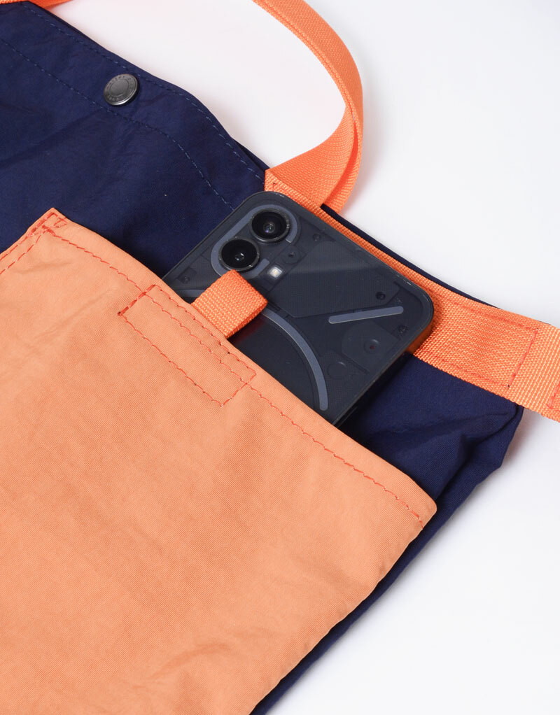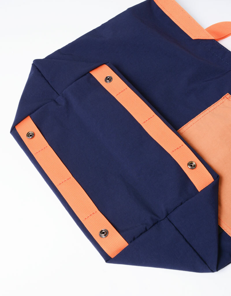 本體材質使用直線為70d常規尼龍線、橫線為160d 塔斯蘭(Taslan)雙股尼龍線織製。 採用液流染色法,不夾住布邊因而在染色過程中加入自然皺褶,表現出類似紡紗、啞光的光澤感和獨特的皺褶感,同時使用更加類似棉質處感的塔沙(Tussah)織材質。 此外,在最後工序中對材質表面進行了防潑水處理。 內裏材質印有日本列島為主題設計的master-piece原創迷彩圖案。