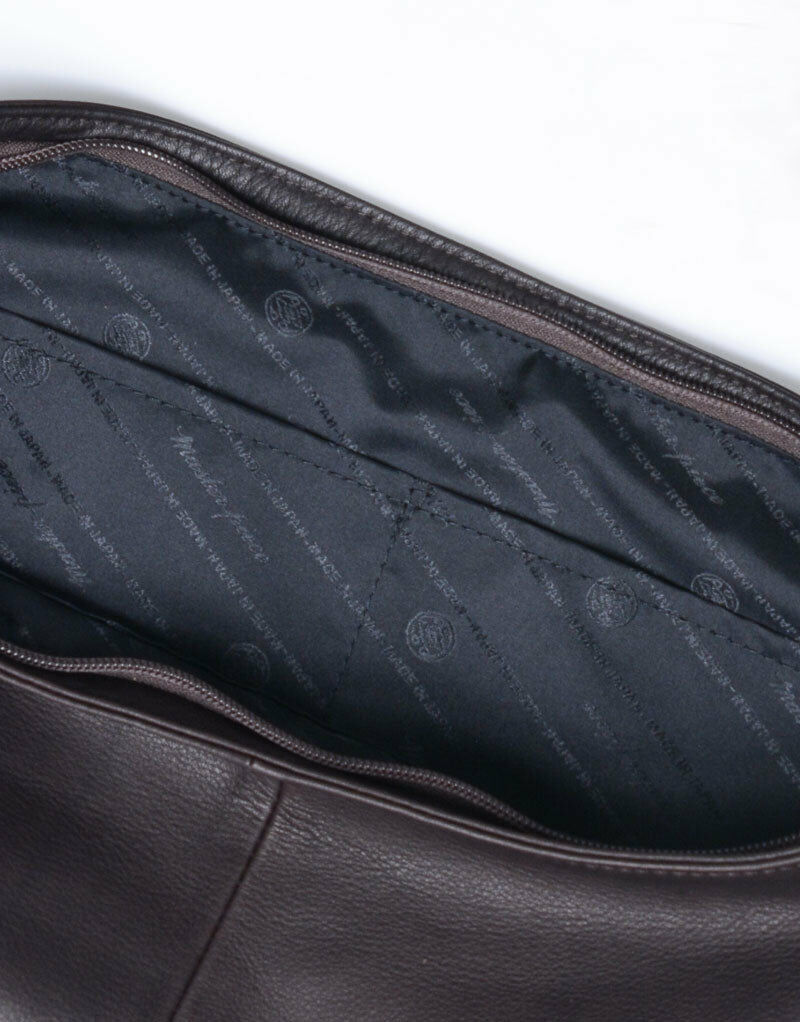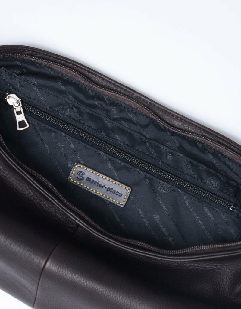 雖然是簡單的光滑皮革,但其特點是具有恰到好處光澤感的美麗皮面。這是只有MONFRINI PELLAMI S.R.L.公司才能製作出的高感度時尚的歐洲皮革。內裡使用印有master-piece Logo的原創提花設計。這是將"Sash"系列升級為皮革版本的中性款商品系列。
