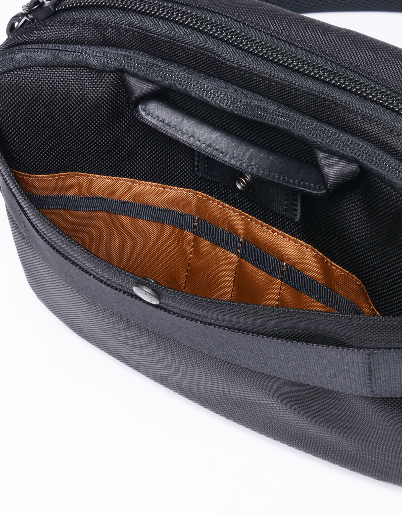 在收納方面,內外都設有大小不同的口袋,顧及到各種場合的使用便利性。 本系列結合了高科技的原創高機能材質與傳統工藝的皮革部件,打造出具有master-piece特色的高端休閒系列。