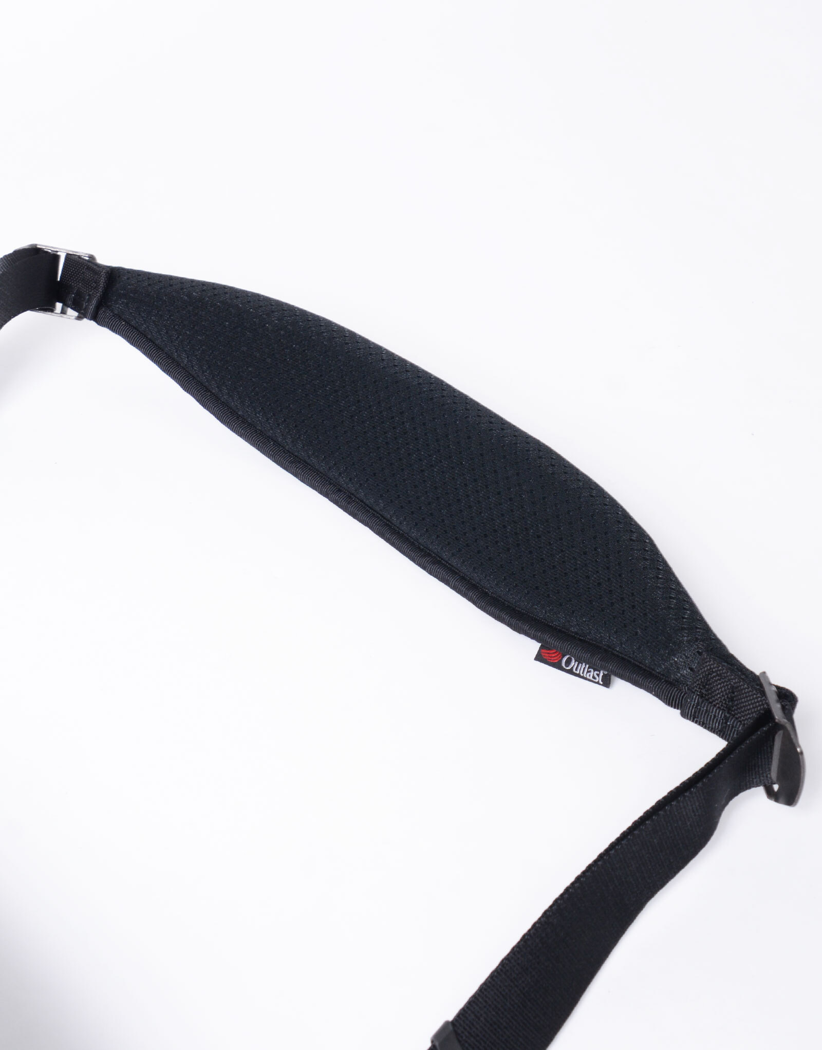 肩帶部件除表層布料外,內裏採用五層結構,內部襯墊使用輕盈有彈性的EVA樹脂,以及旭化成Advance公司的Fusion®材質,這是一種常用於寢具和車用座椅的創新立體織造物,由兩層織物間以有彈性的紗線連接而成,具備優異的吸震緩衝性能,加上斜紋結構,形態穩定性也非常優異。