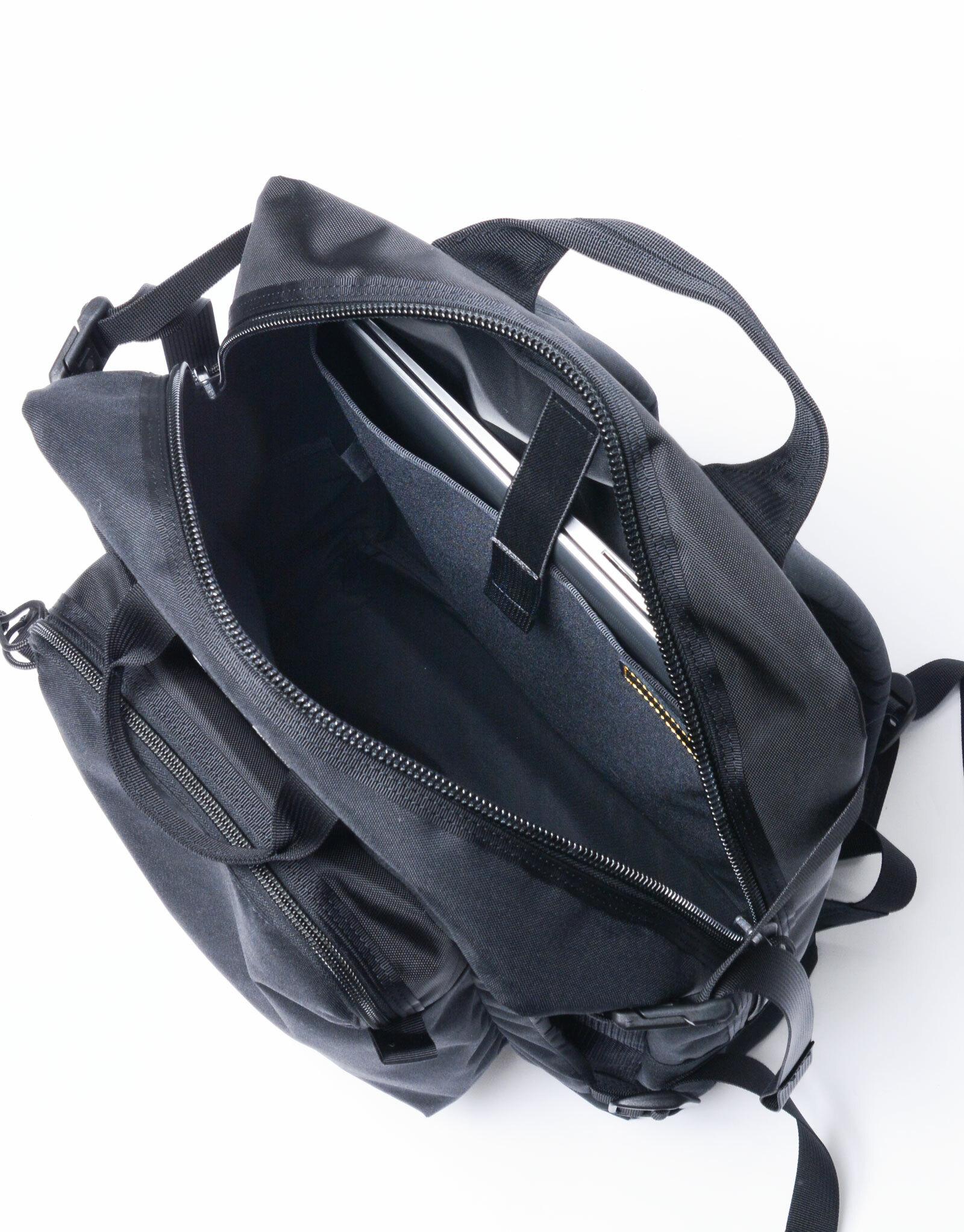 前側上部的口袋設計為可大幅開啟,方便臨時收納筆記型電腦或文件。