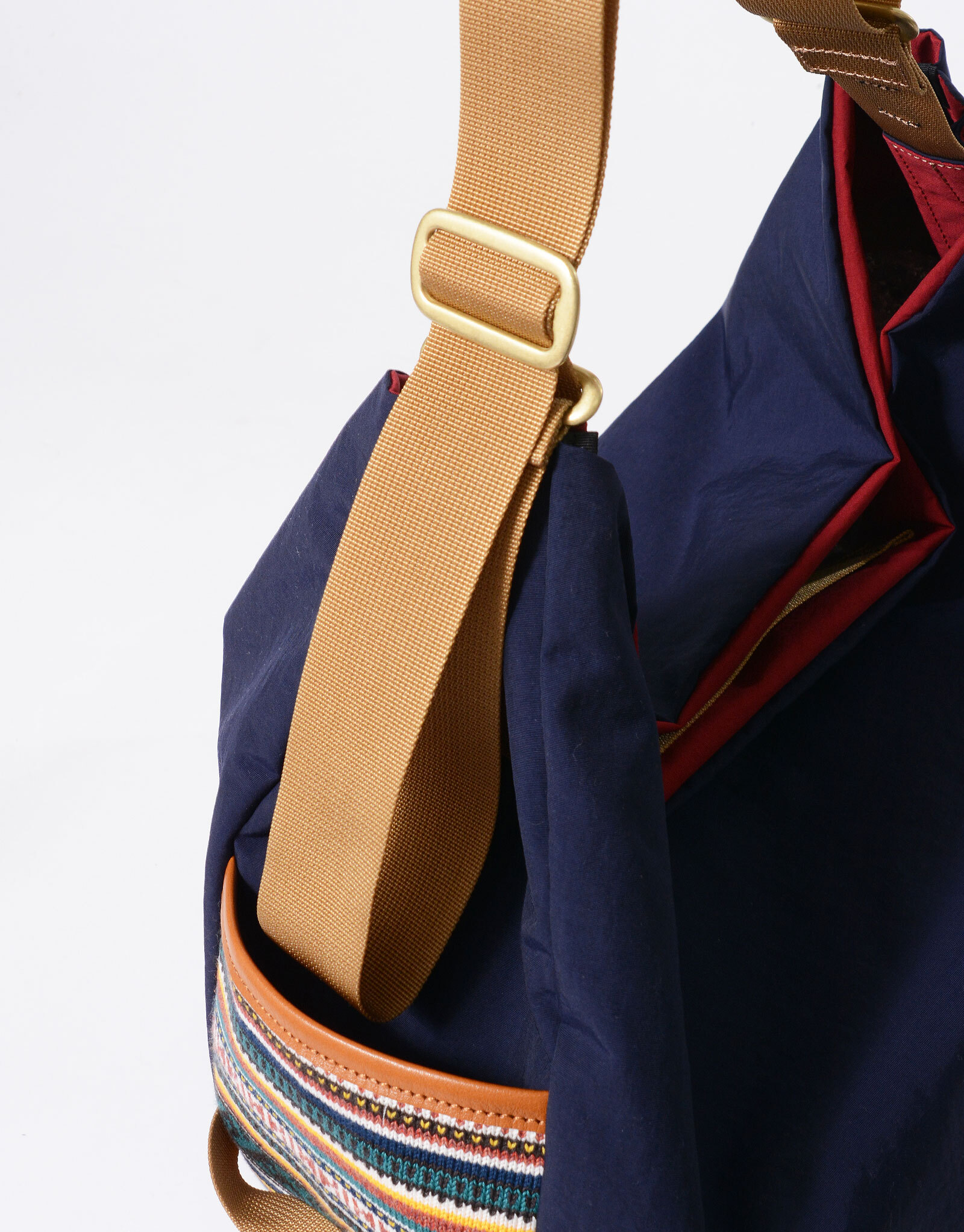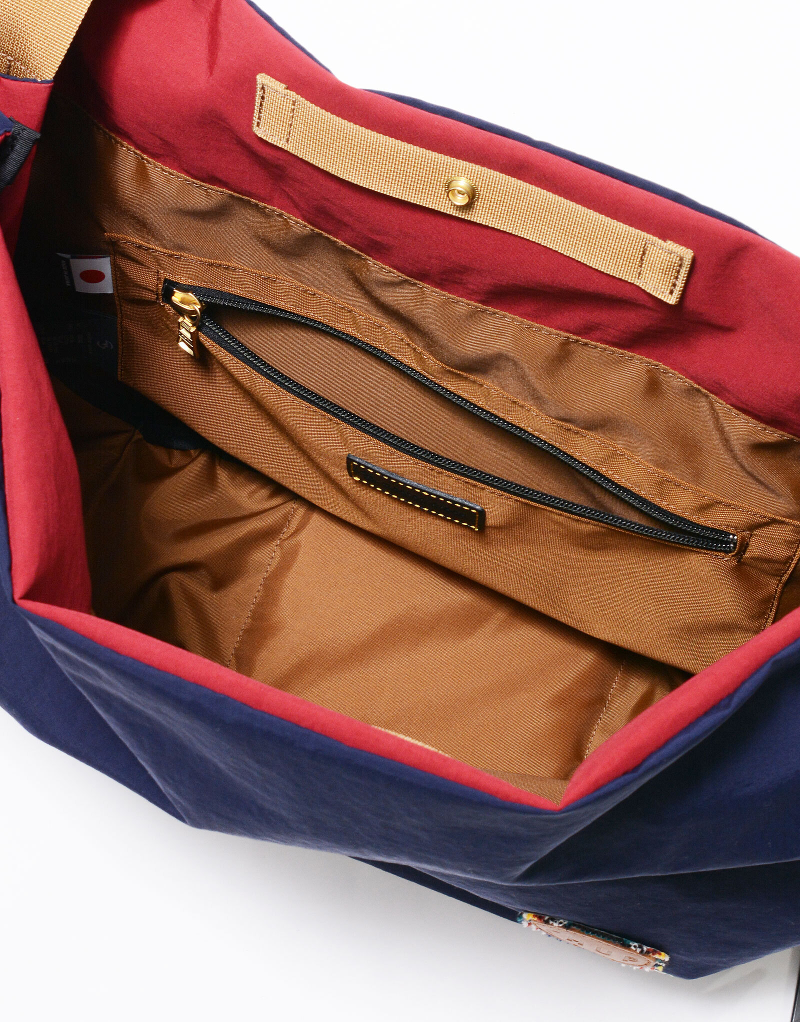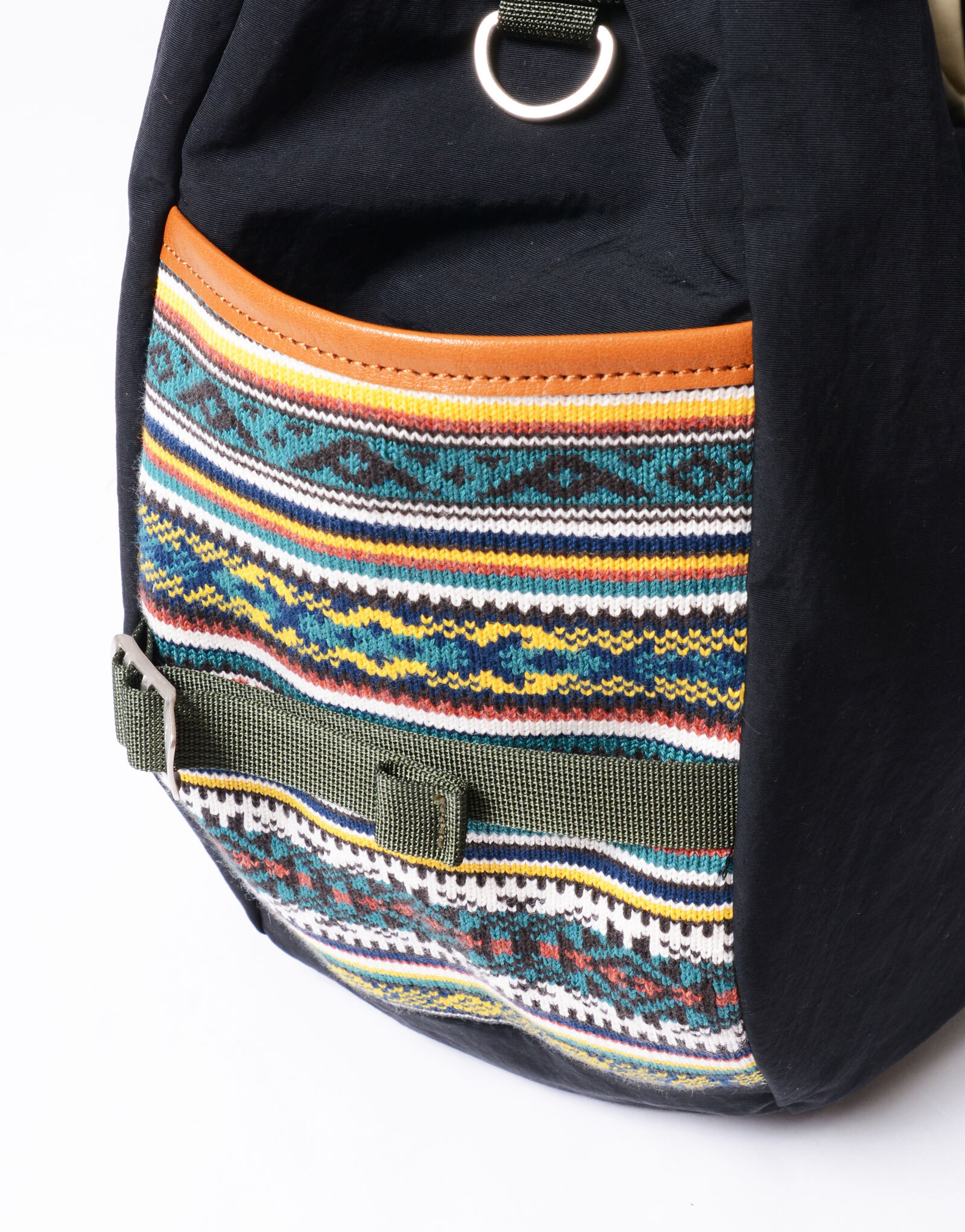 本次聯名特別開發的專用布料運用於包款兩側。原本為具彈性的襪用材質,刻意透過提高織密度來抑制彈性,使其兼具適合包款使用的強度與獨特質感。