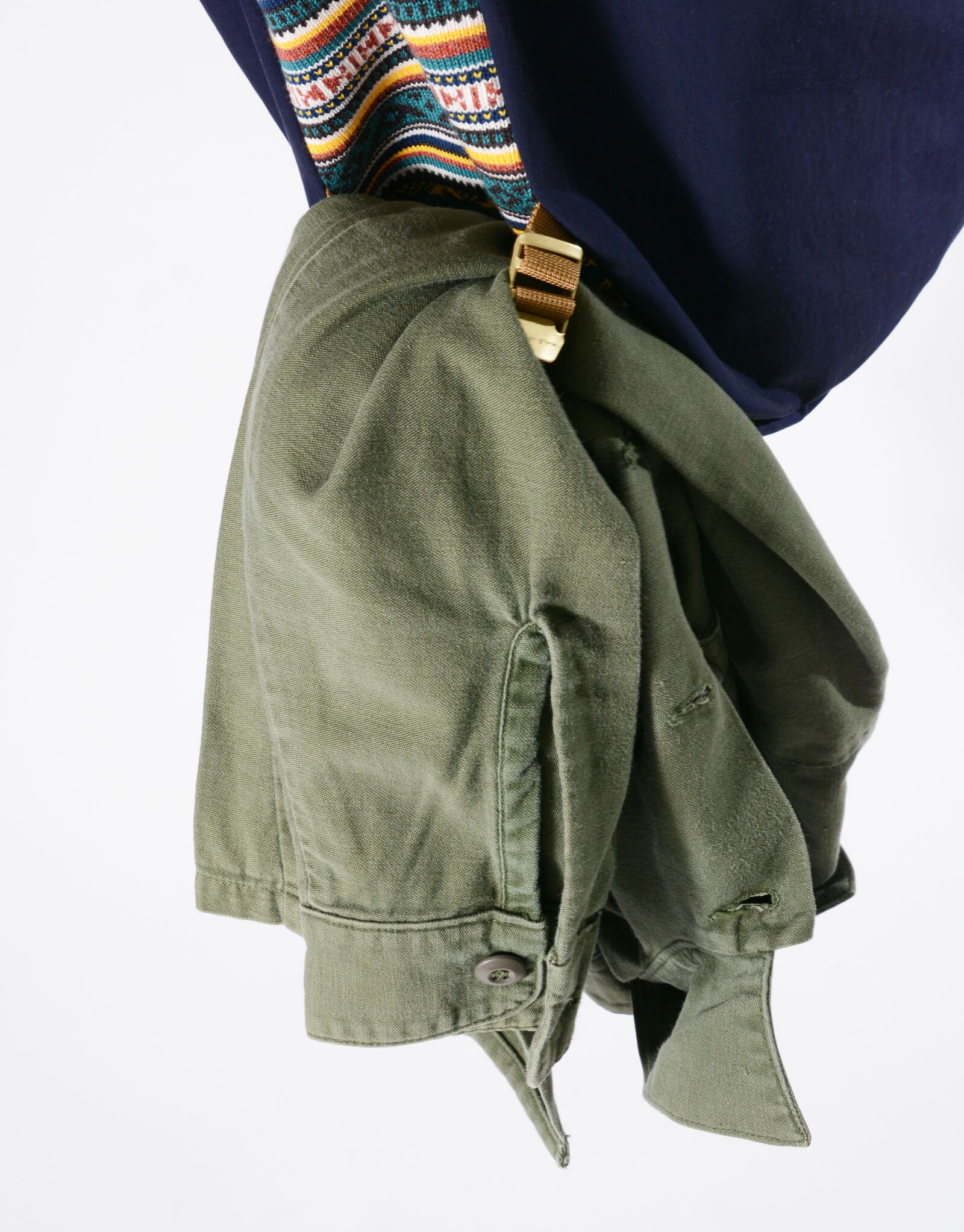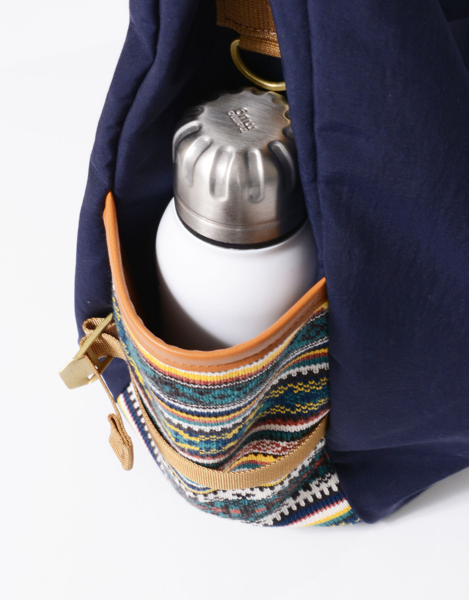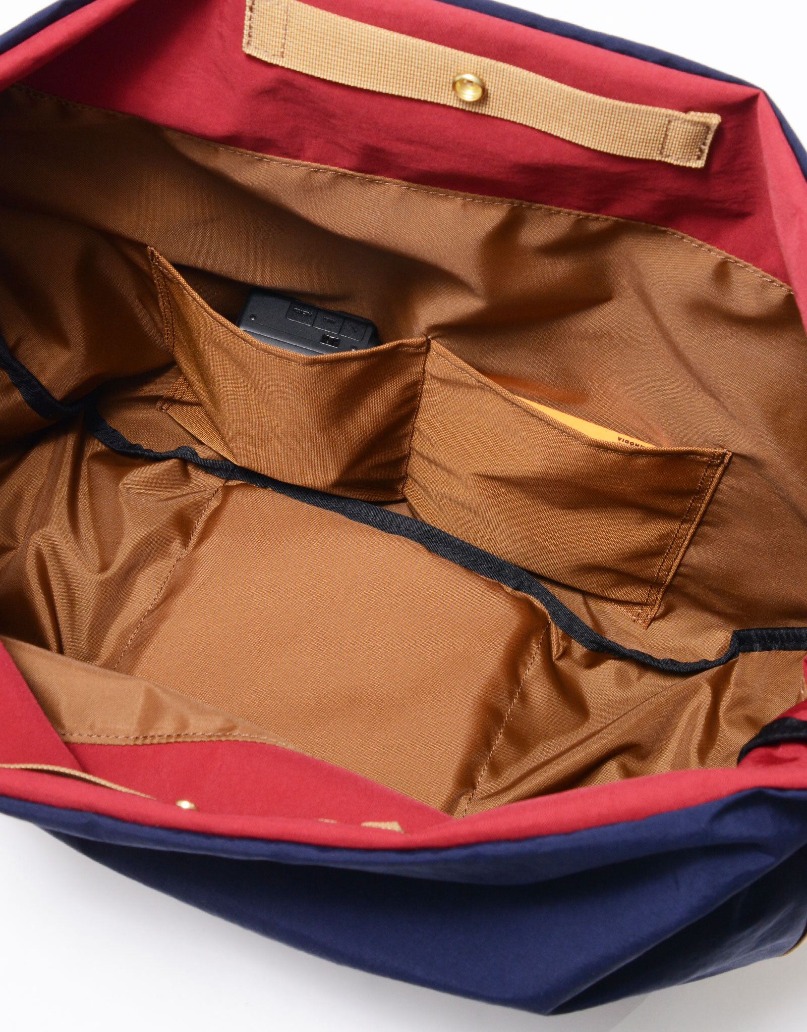 本次聯名特別開發的專用布料運用於包款兩側。原本為具彈性的襪用材質,刻意透過提高織密度來抑制彈性,使其兼具適合包款使用的強度與獨特質感。
