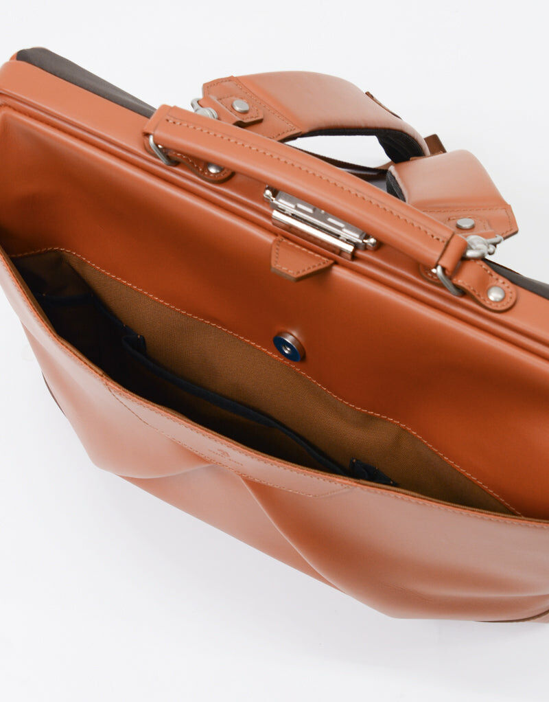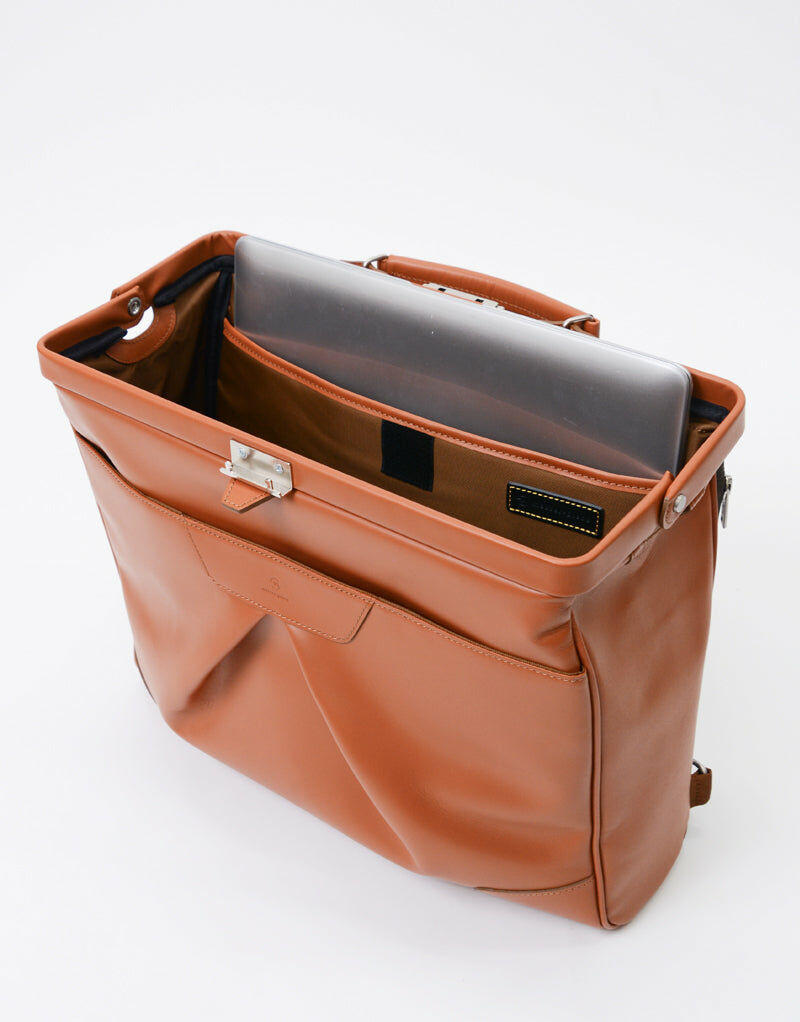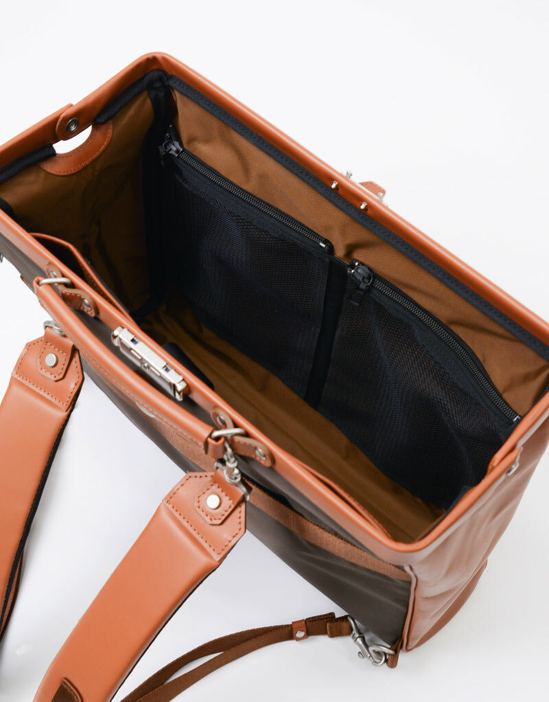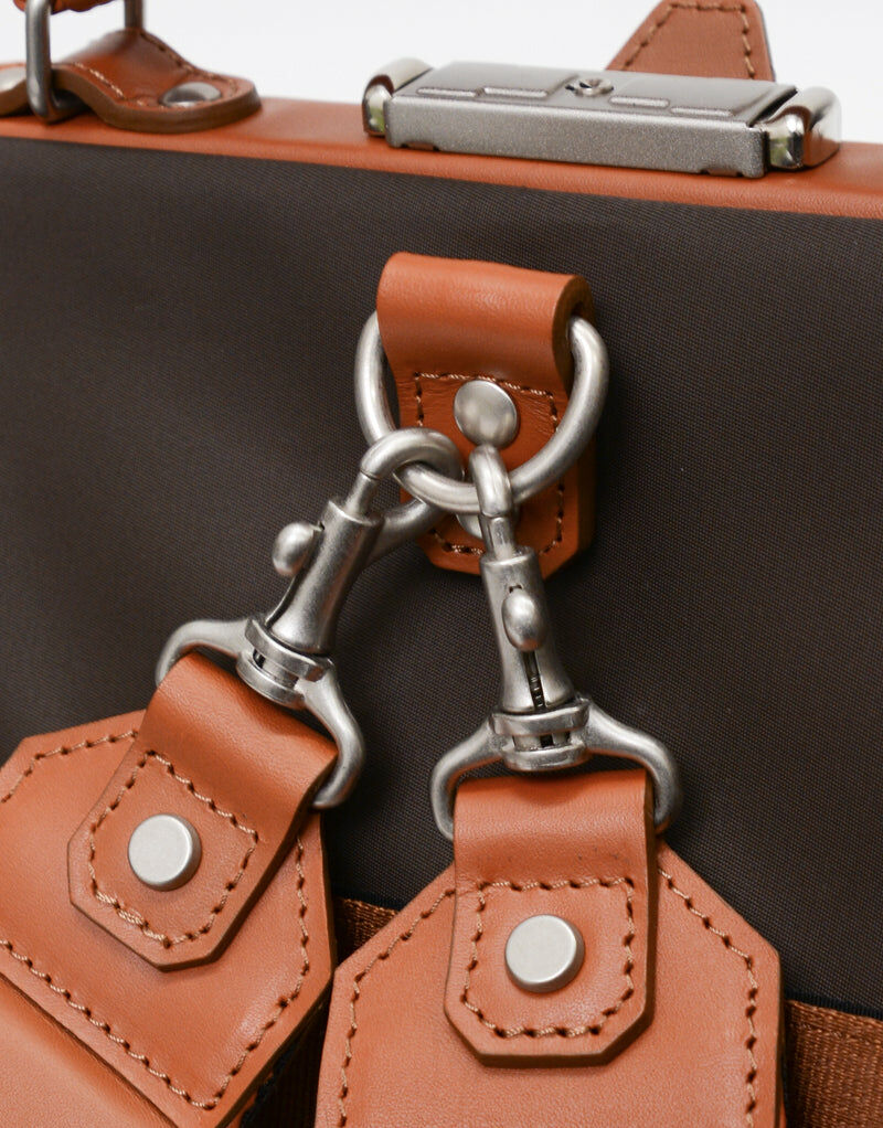扣具五金附加了鑰匙鎖,用於開關增加包袋的安全性。優雅的袋型以、高強度、充滿生活機能的素材設計重現,無論男女均可感受到重新詮釋的經典杜勒斯包,並可悠遊使用於職場與生活。