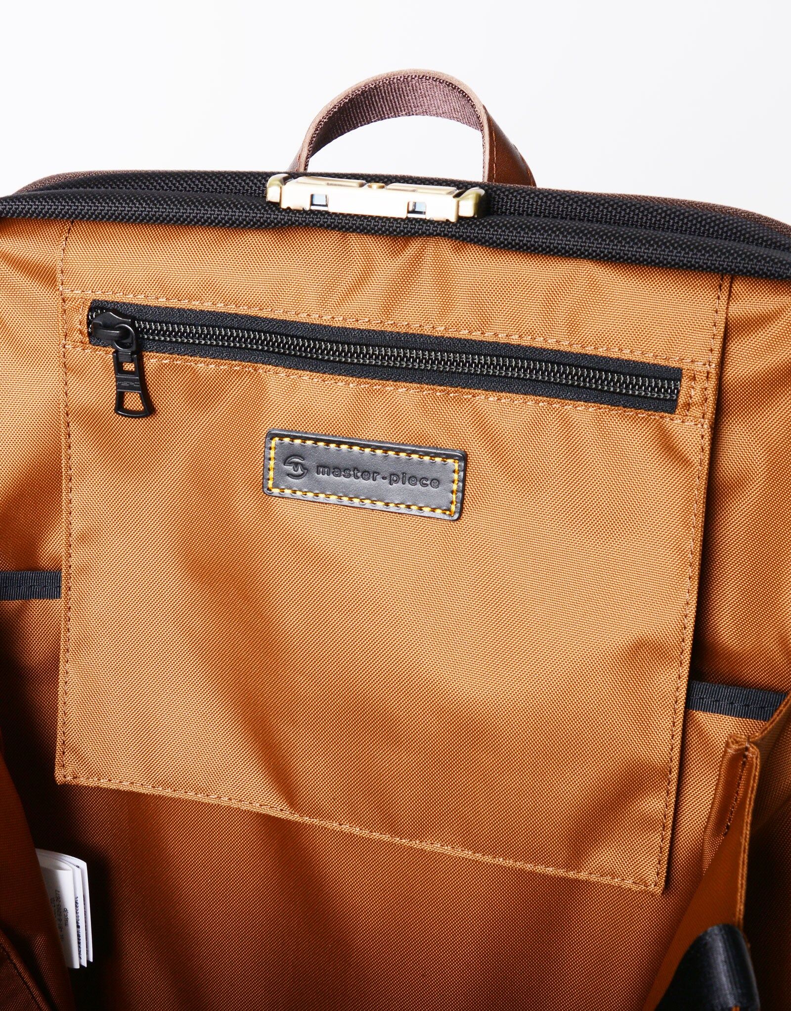 肩背帶內建 master-piece 原創的「m-strap」減壓機構(已註冊實用新案),能有效分散身體所承受的重量。內部收納空間設有筆電與平板收納隔層,並配備數個實用口袋,滿足日常所需的分類收納。