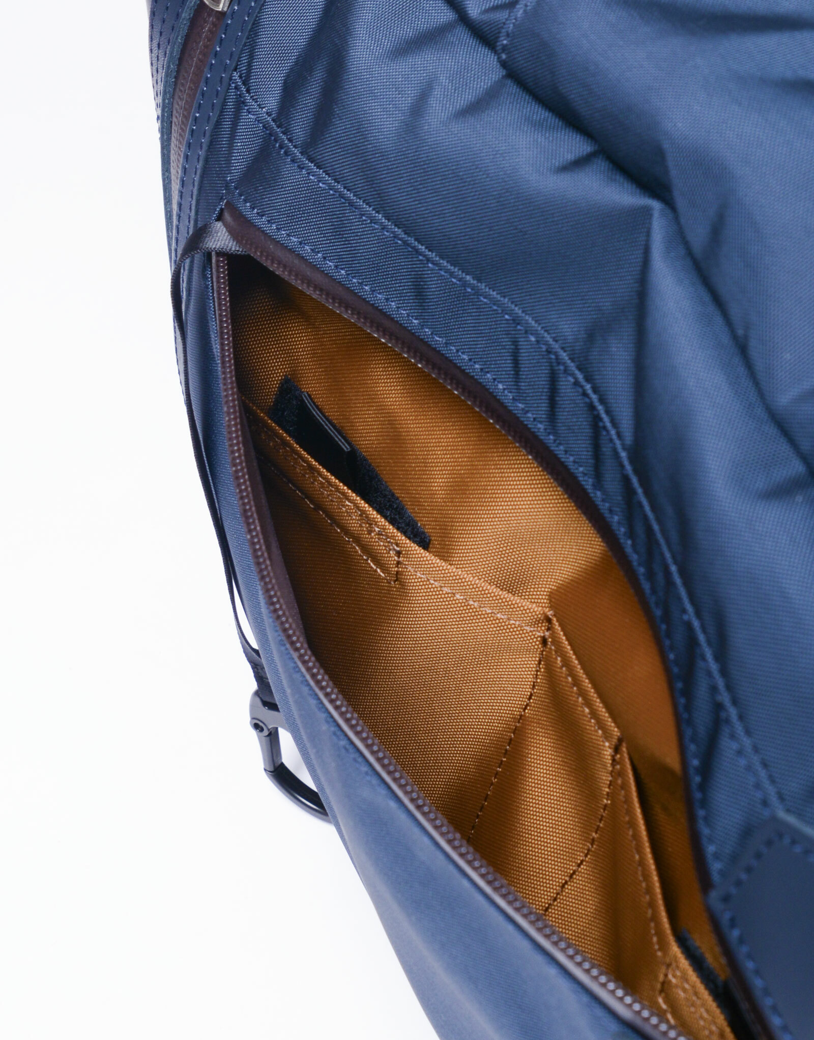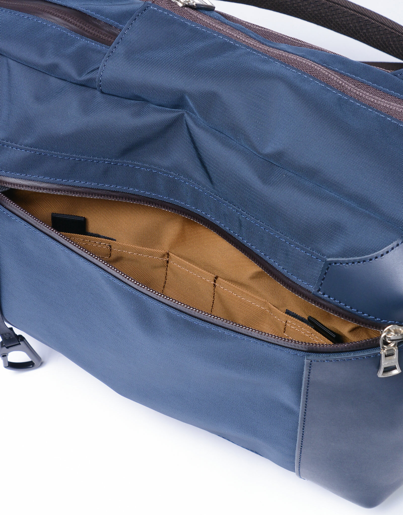 內裏材質採用420d尼龍牛津布,選用視覺效果佳的原創駝色。主拉鍊等處則採用YKK公司生產的AquaGuard®拉鍊,其表面經過聚氨酯覆膜加工,具有防水性能。在包款正面頂部設有適合收納無線耳機等小物品的口袋,同時內部收納空間也根據現代需求重新設計。 本次STREAM系列經過升級,結合了高機能原創材質和SCOTCHGARD®防水皮革,採用簡約的設計和配色,適合各種場合使用。