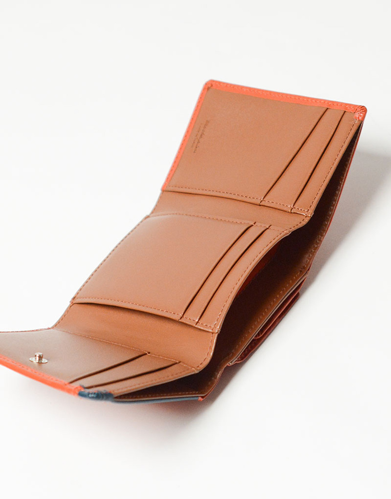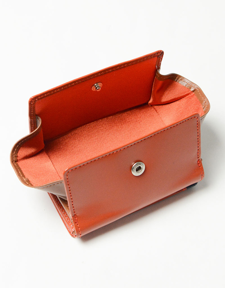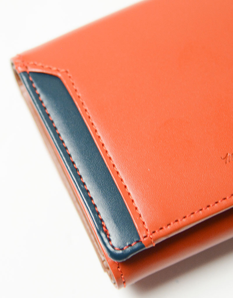 主體材質是由日本唯一經LWG(皮革工作組織)認證的皮革廠製品,皮革經鉻鞣製加工後染色再拋光銀面,為增強皮面強度,使用了特殊藥劑進行緊緻加工處理,最後工序將皮面噴上塗料提升顯色效果,再以呈現小牛皮的紋理壓紋加工處理讓表面呈現整齊質感。內裝的附屬皮革使用有高質感與堅韌的小牛皮。高密度纖維帶有柔軟親膚感,被稱為最適合製成小型皮革製品的材質。表面使用樹脂加工,讓皮革具有防刮及色彩豔麗的顯著效果。系列包款以正面皆有設置卡夾為特點,※LWG(皮革工作組織)是國際組織,負責評估對環境的合規性和皮革製造商的表現能力,及促進皮革業的可持續發展和適當的環境的商業行為。