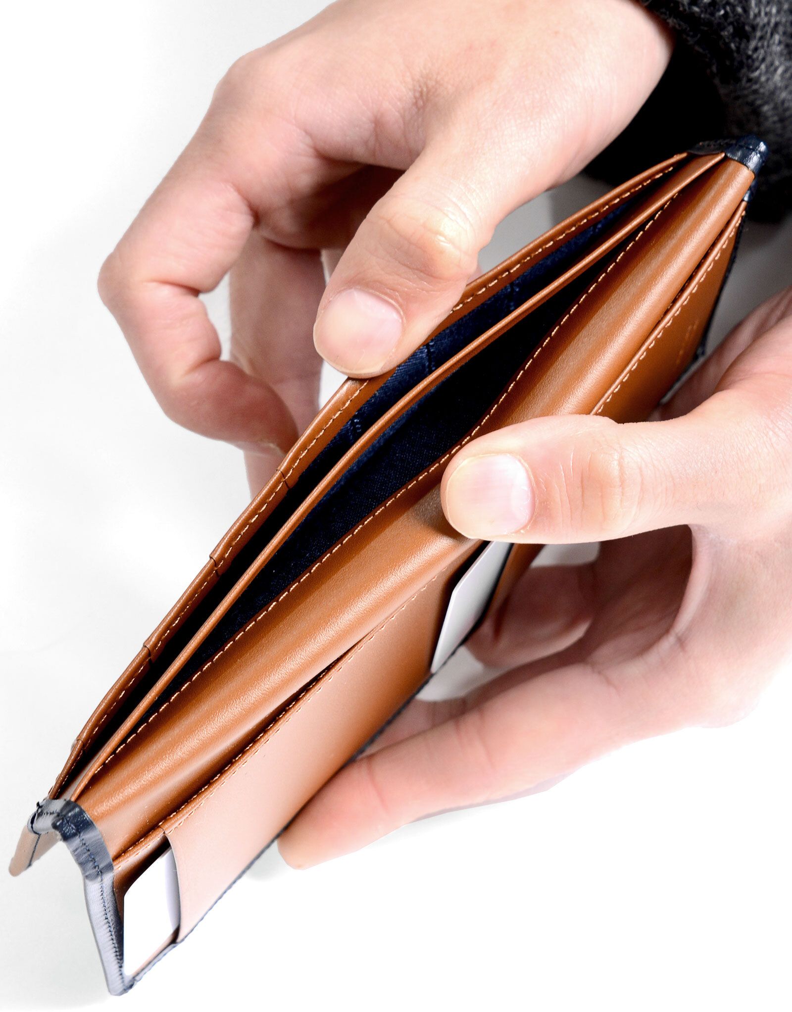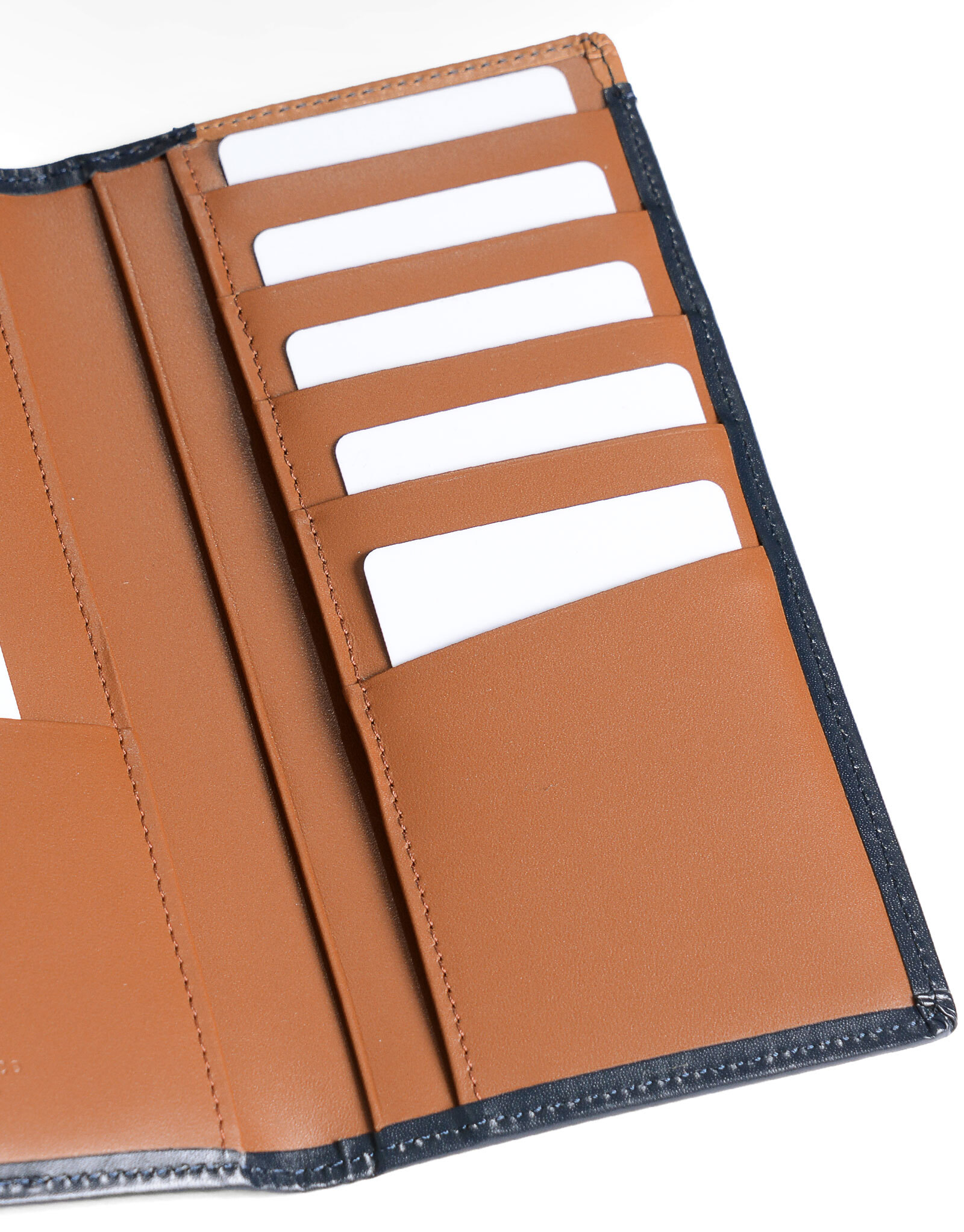 表面使用樹脂加工,讓皮革具有防刮及色彩豔麗的顯著效果。系列包款以正面皆有設置卡夾為特點。