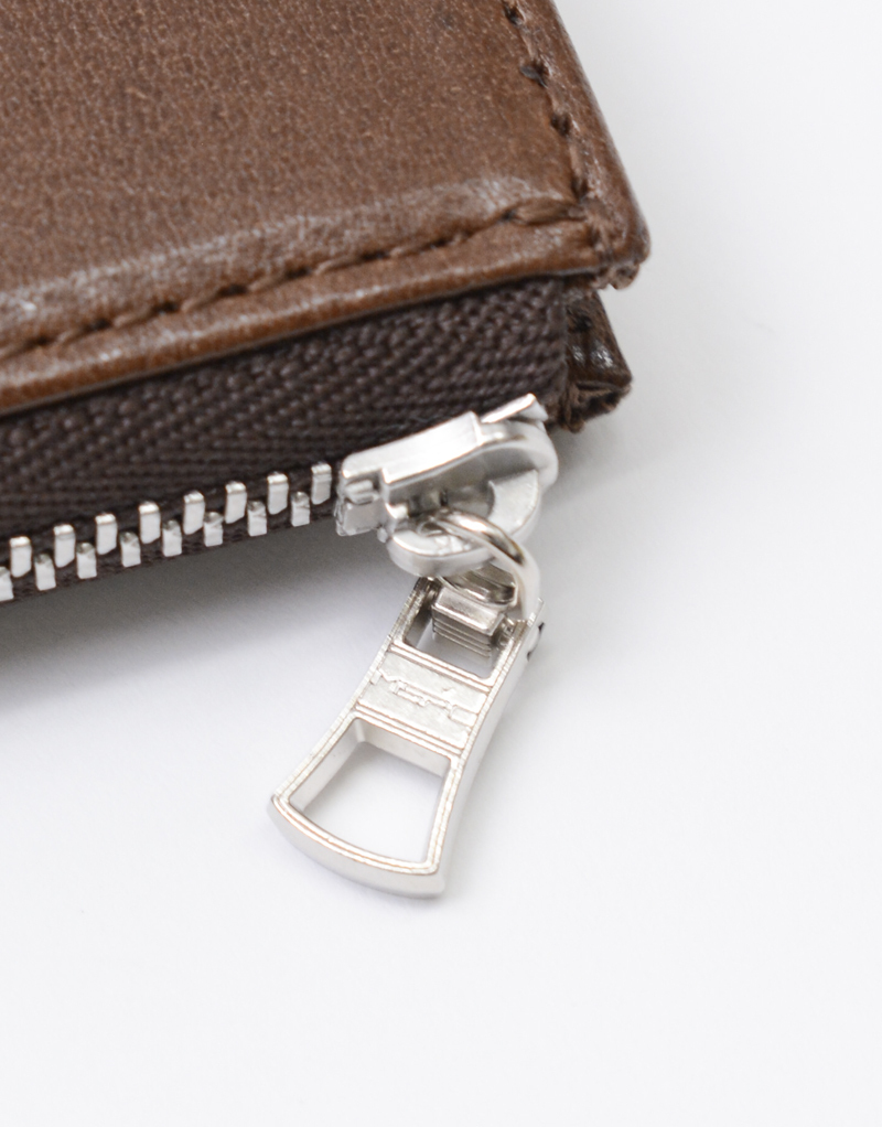 拉鍊採用YKK的EXCELLA系列。由於表面經過研磨處理,因此具有順滑的手感和光澤。