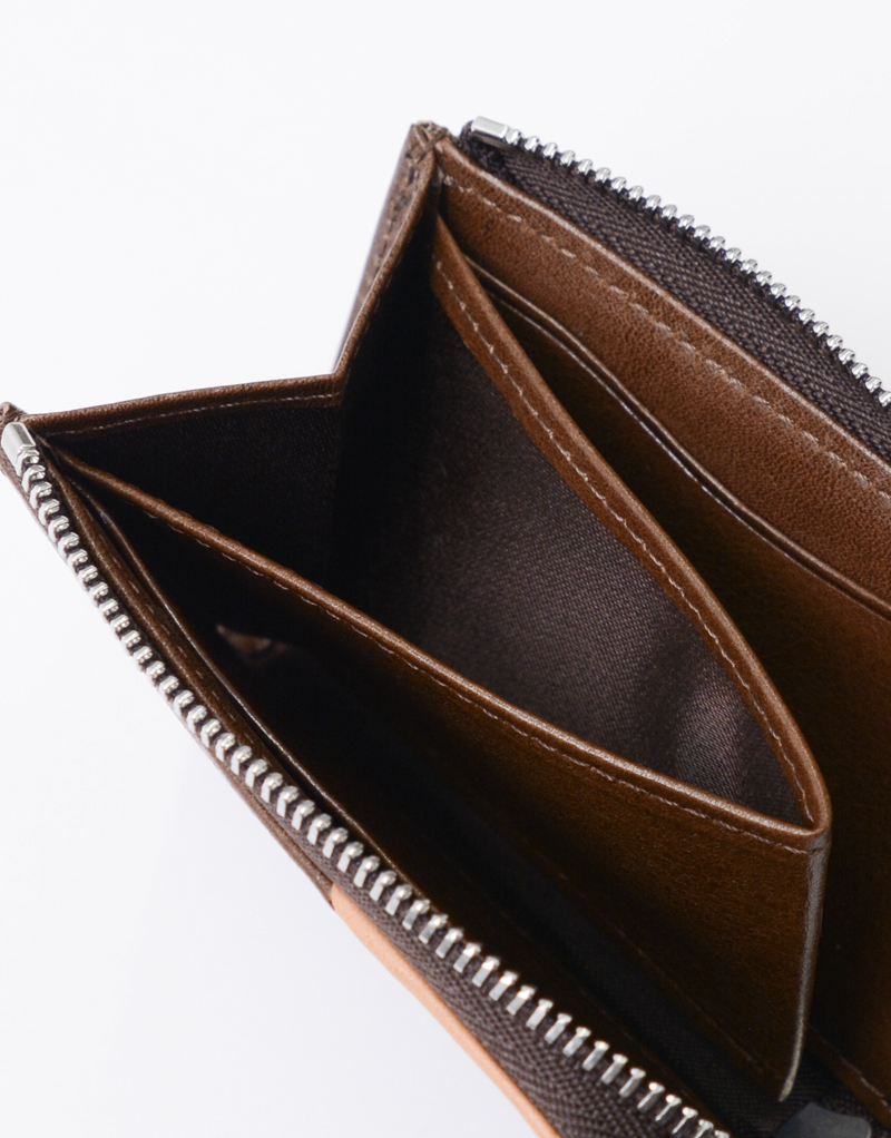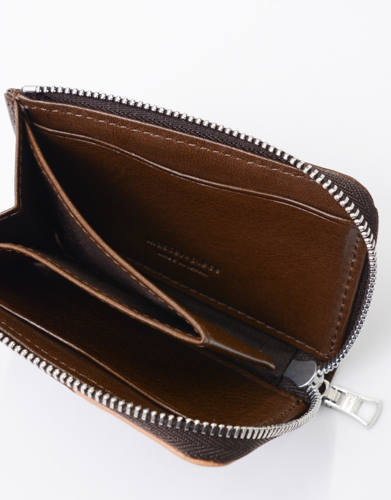 本系列商品採用日本國產原皮,經植物性單寧鞣製及油脂加工處理,以展現柔軟度、深邃色彩和透明感。皮革進一步進行細緻的軋滾加工處理,形成收縮皮革,使皮革更顯高級感。同時,僅使用天然染料進行染色,使皮革呈現自然而柔軟的風格。內裏採用相同皮革,打造出一致性的高質感的商品。伴隨著日常使用,您將能享受加脂皮革獨有的自然舊化美感。