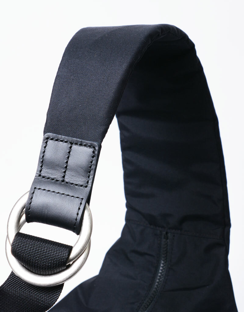 肩帶單側加入5mm厚的高發泡聚乙烯材質,以減輕肩膀負擔,同時採用雙環扣具,且包體 兩面設計相同,無論慣用手為左手或右手都方便使用。可用扣繩調節開口大小的側袋不僅適 合存放水瓶等物品,繩扣底部還配有扣環,便於收納鑰匙或IC卡片等小物。