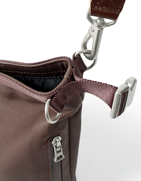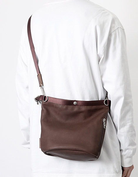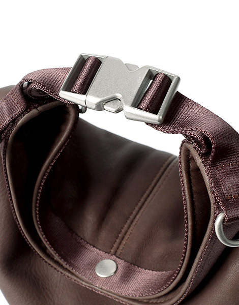 本系列為結合具備防水機能、並以柔軟質地呈現的皮革,搭配帶有光澤感的尼龍織帶所打造的中性設計皮革包款系列。 開口處的扣具可拆卸,呈現不同使用風格同時透過兩處肩背帶的安裝位置變換,能依照行李多寡調整背法,享受更靈活多變的使用方式。