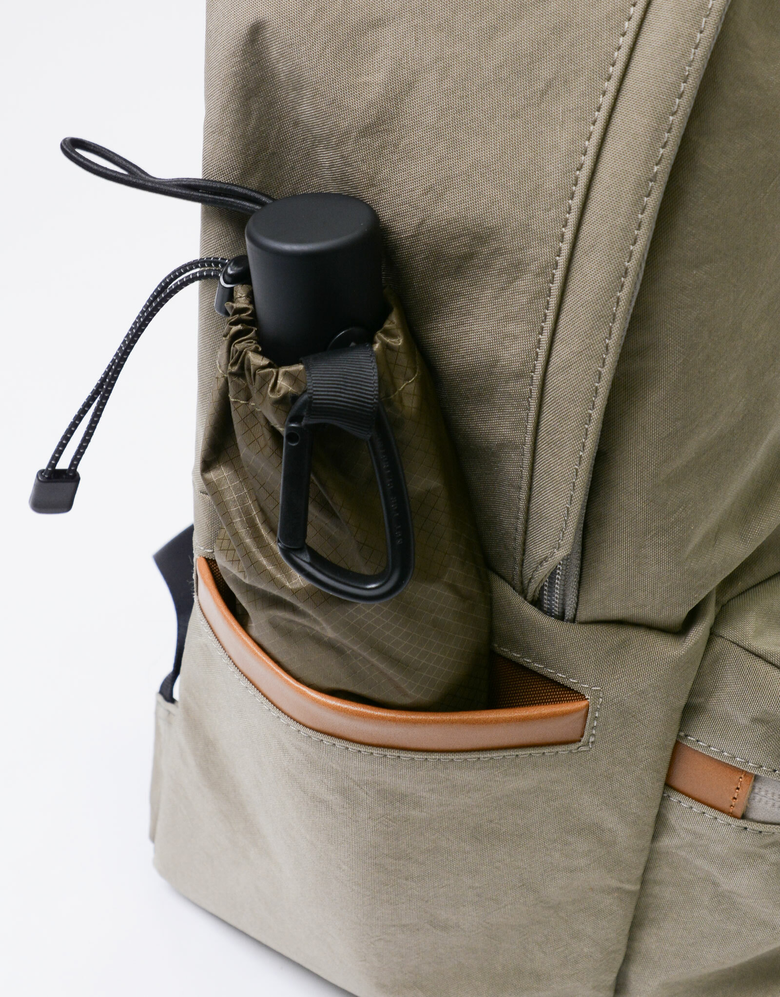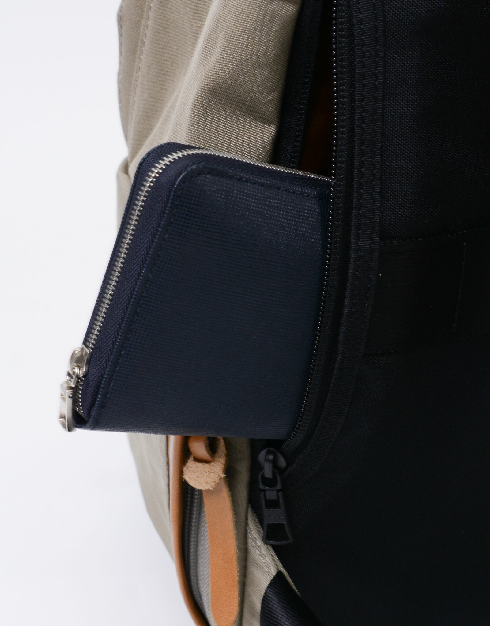 右側邊設有拉鍊口袋可放置錢包。