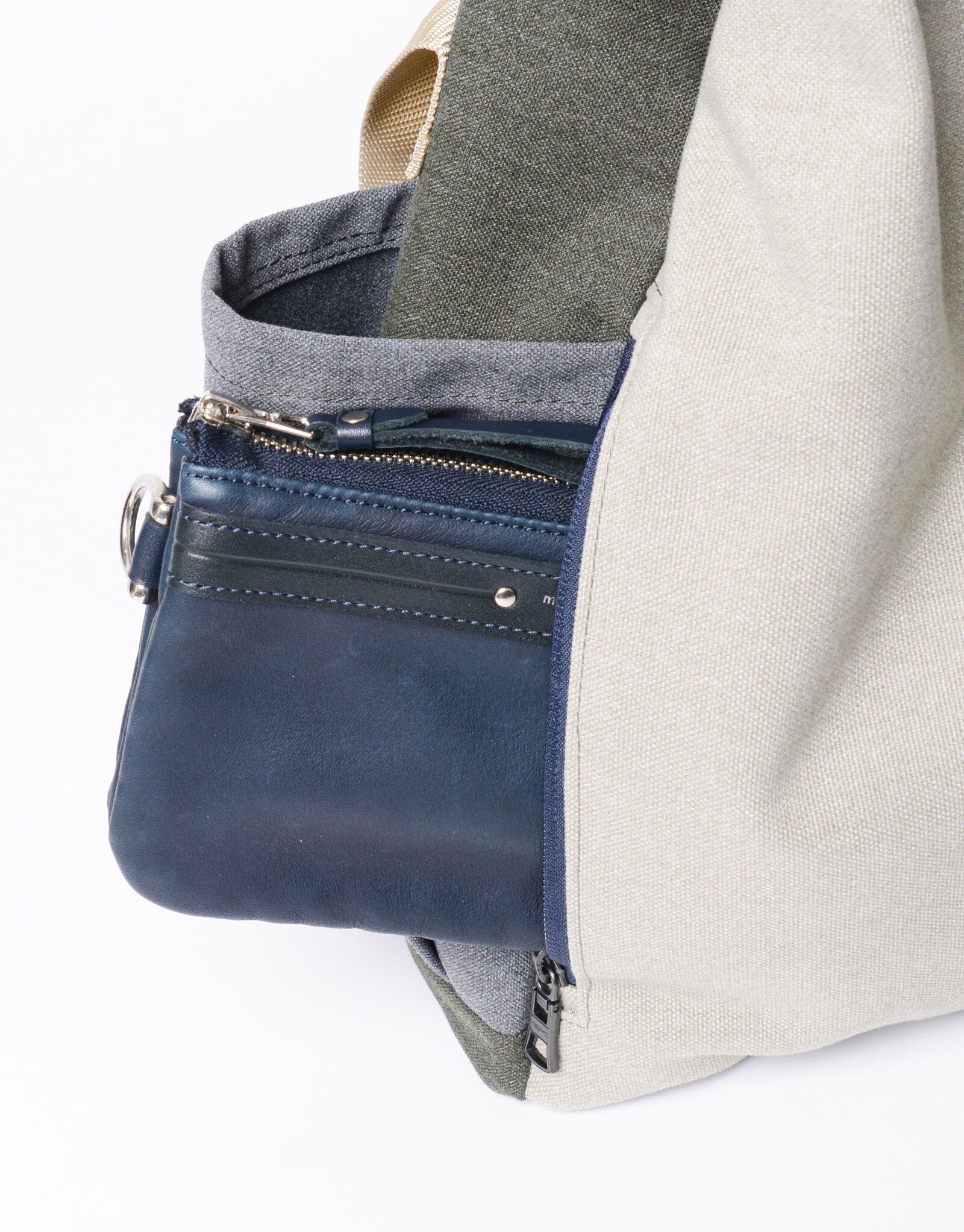 顏色共有 米色、卡其色、黑色 三款。米色與卡其色採用不對稱拼接設計,展現低調卻不失個性的風格,並以中性配色打造出適合各種穿搭的平衡感。