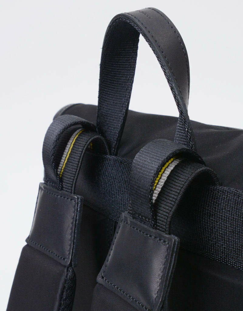 尼龍織帶採用中空尼龍紗線,經過特殊處理後織成優雅斜紋面料。在保持一定厚重感的前提下輕量化,且觸感絲滑。在具備防水等高機能的同時,也兼顧了皮革與尼龍異材質融合的奢華氛圍。