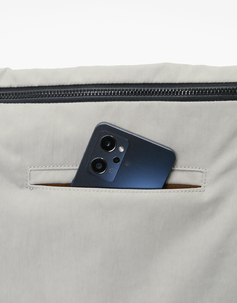 正面附有使用YKK公司的AquaGuard防水拉鍊收納口袋,內裏材質使用透氣防水的3層尼龍布料,增強防水性。