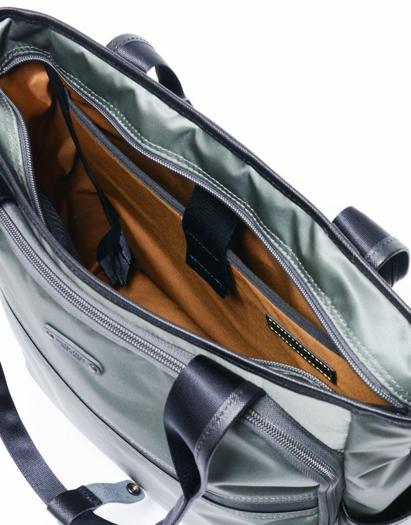 主體面料採用了經 master-piece 原創特殊防潑水加工 m-coat™ 的高機能尼龍斜紋布。