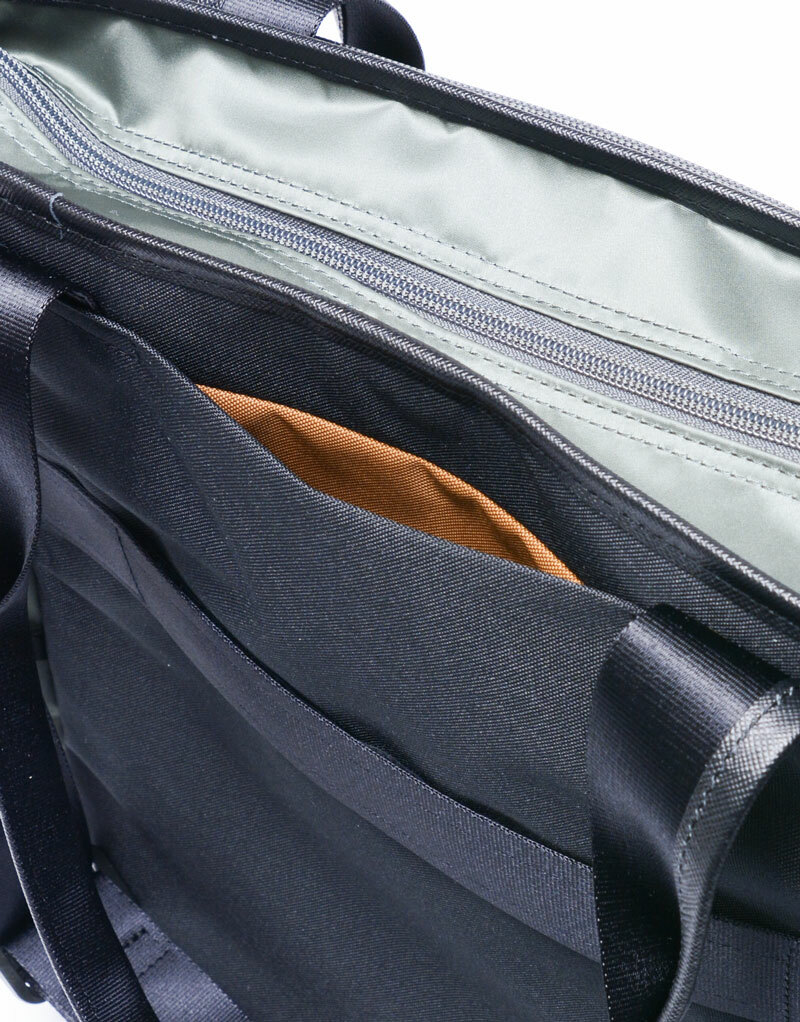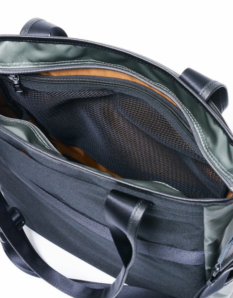 主體面料採用了經線 70d、緯線 210d 的高強度 66 尼龍,以高密度斜紋組織織成,並經高壓染色處理。隨後,施加了名為 m-coat™ 的 master-piece 原創特殊防潑水加工。