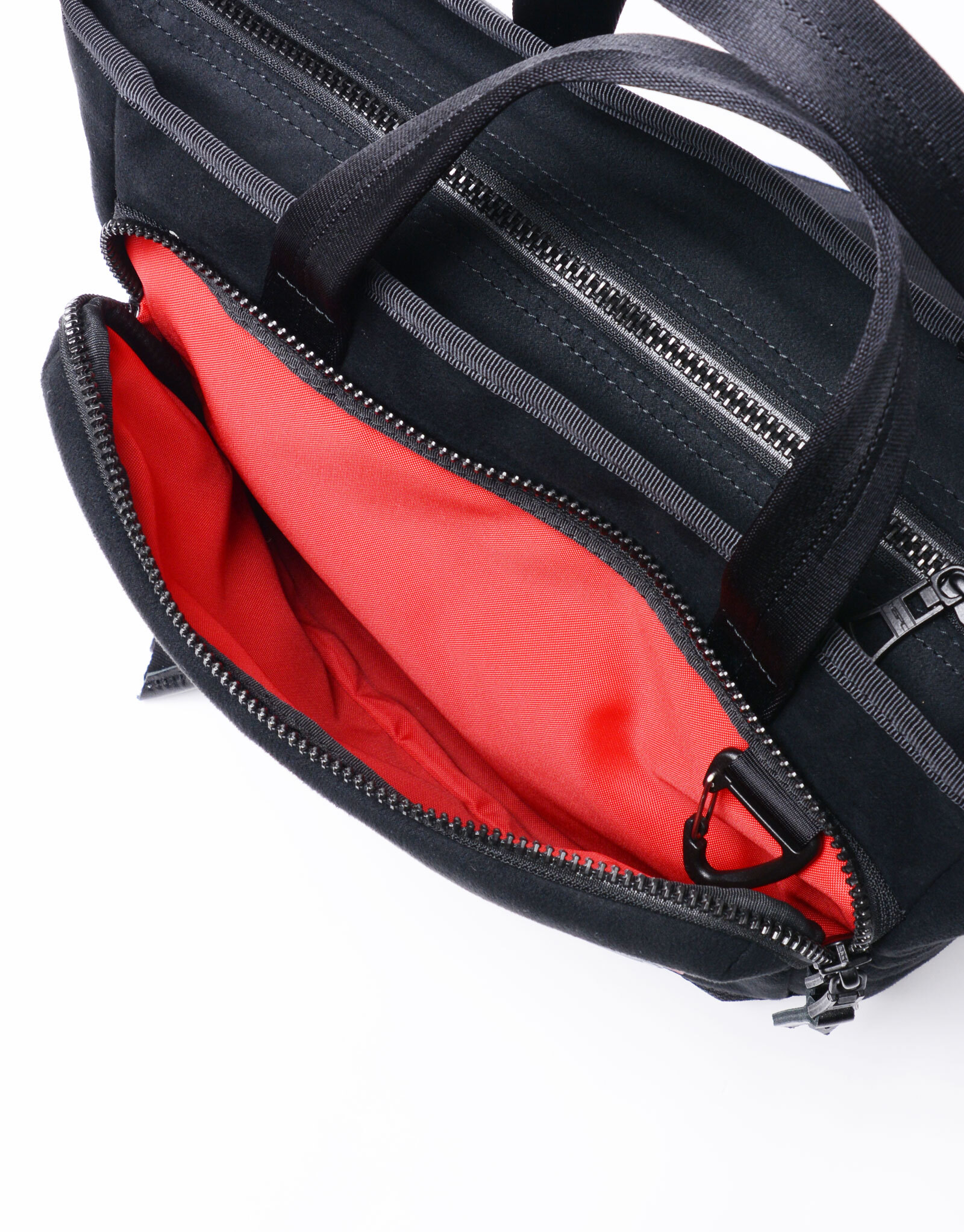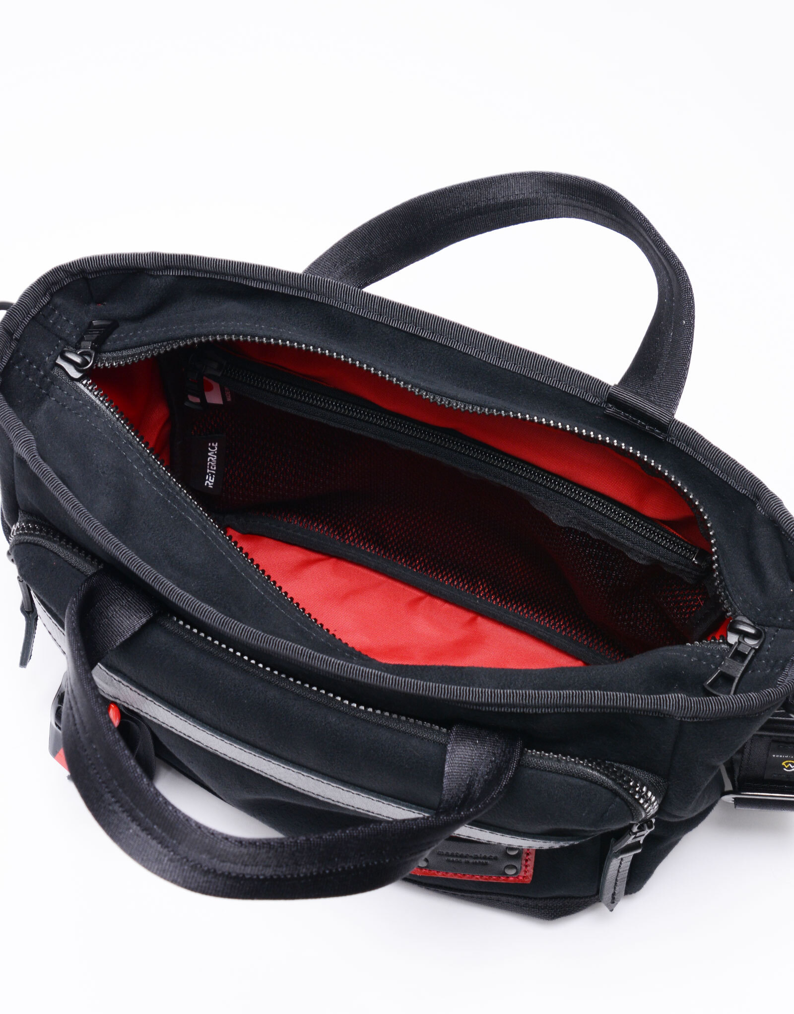 將 GR YARIS 與 GR COROLLA 座椅上所使用的類麂皮布料進行再製利用(Upcycle),作為包款本體的主要素材。