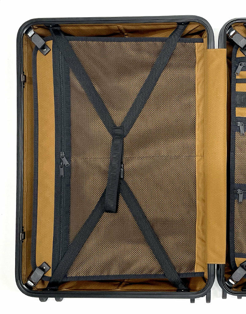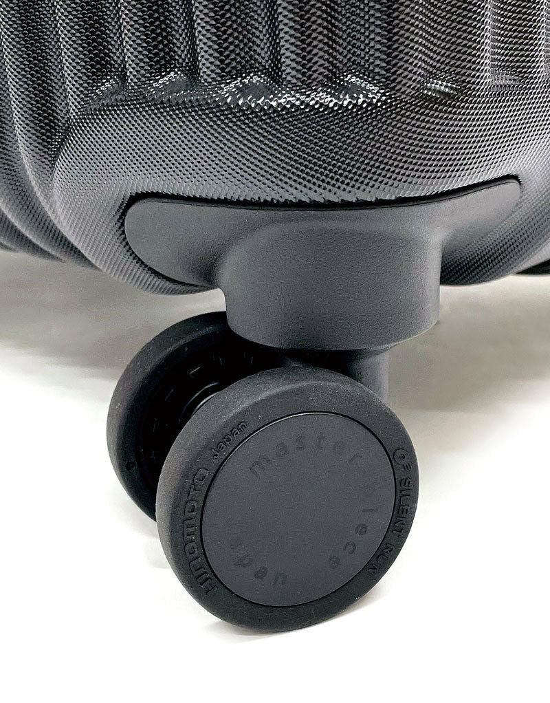主體使用聚碳酸酯合成樹脂製成的外殼具有抗震、耐熱和阻燃的高物理特性。外殼形狀為垂直的波浪狀,可增強整體強度與兼顧時尚感。此外,在箱身上方兩個角以一體成形凸出,比一般補貼方式更為強壯並可減少與主體的摩擦。配備了美國運輸安全署認證的「 TSA鎖(※)」。此外,便捷的輪鎖開關設在側邊處,在電車、斜坡時能方便快速的使用功能。內部的隔板設有網袋,隔板可拆下方便懸掛取物使用。※TSA鎖是美國運輸安全署 TSA(Transportation Security Administration)認證的行李鎖,即使到了世界最嚴謹的海關(夏威夷、關島)也無須擔心行李箱被破壞檢查。為了生產與使用TSA鎖的商品必需要獲得TSA的許可。此為master-piece推出的硬殼行李箱,簡約內斂的外型兼具多處細節。